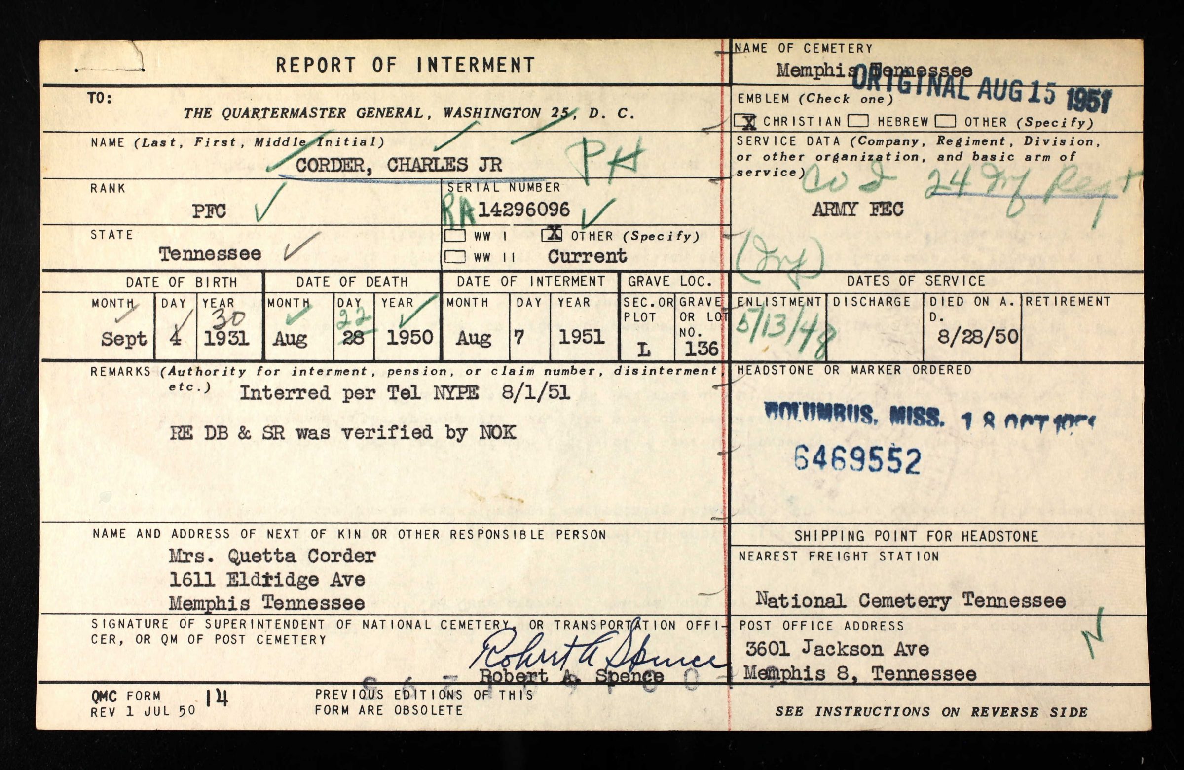 - Burial/Memorial Location: Memphis National Cemetery, Memphis, TN
