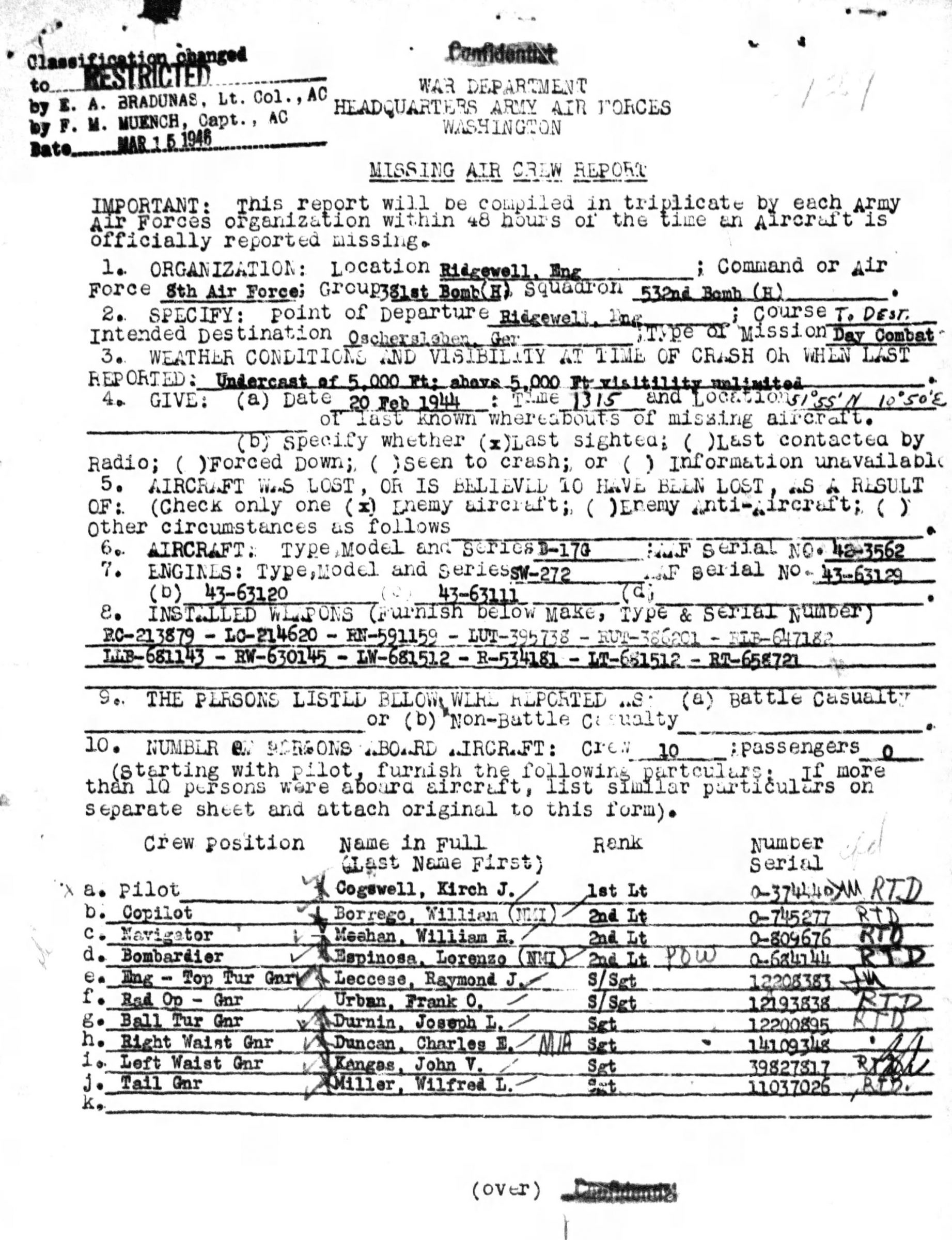 - Division/Assignment: 532nd Bomber Squadron, 381st Bomber Group, Heavy