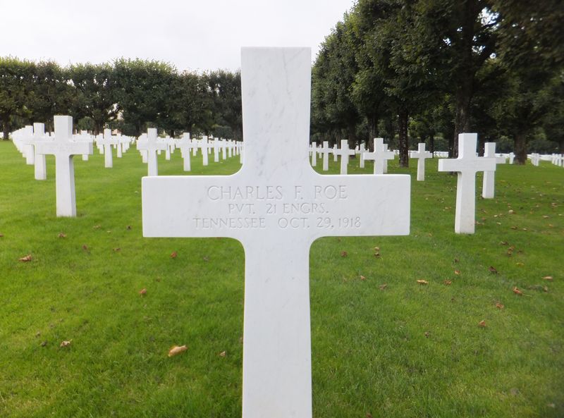 He is buried at plot C, row 34, grave 38, Meuse-Argonne American Cemetery, Romagne, France.