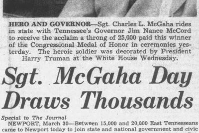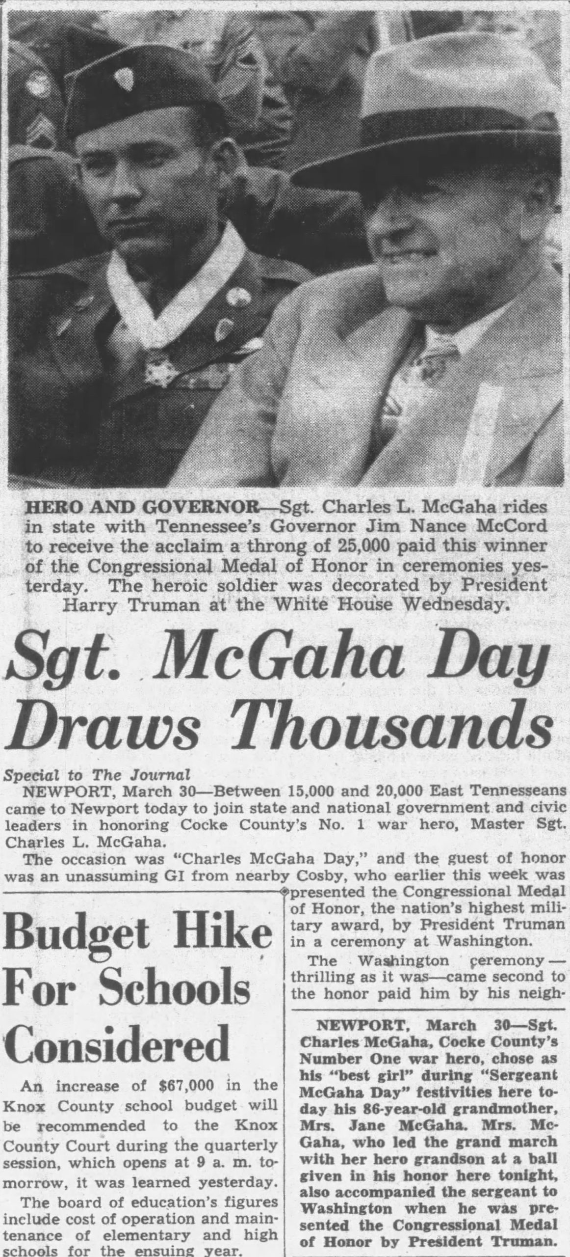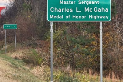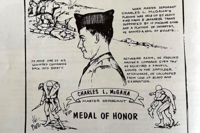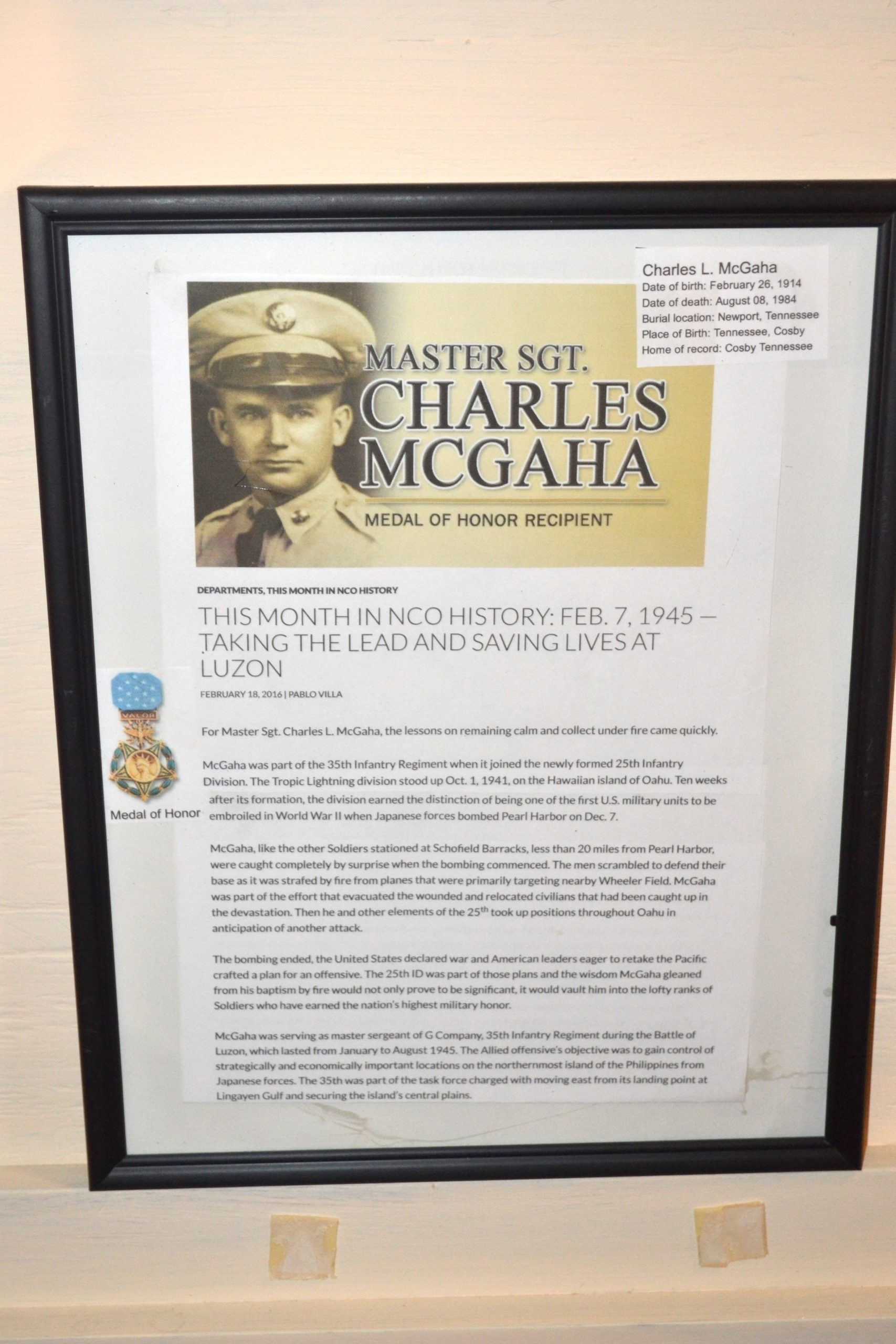 When the last man had gained the new position, he rejoined his command and there collapsed from loss of blood and exhaustion. M/Sgt. McGaha set an example of courage and leadership in keeping with the highest traditions of the service.”