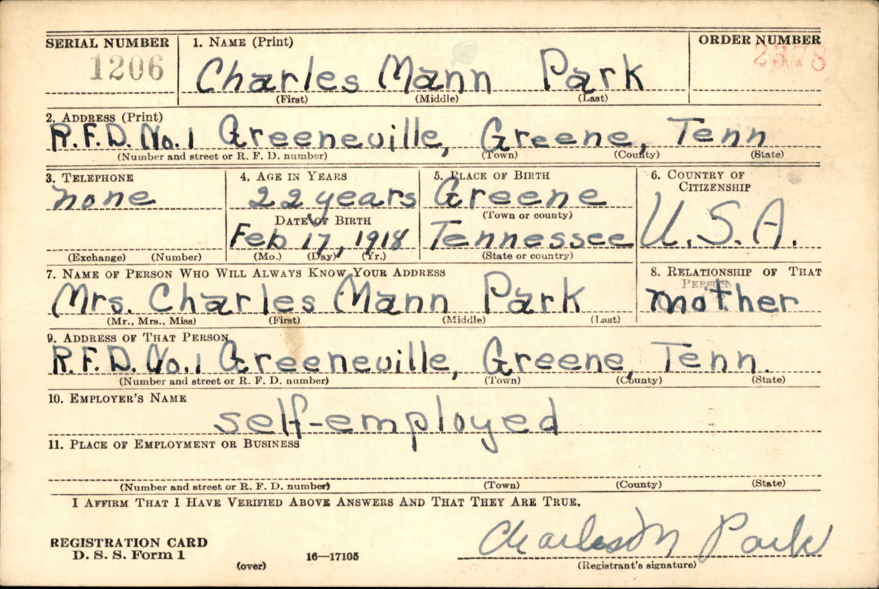 Charles Mann Park was the son of Charles Mann Park and Anna Isabel Lee.