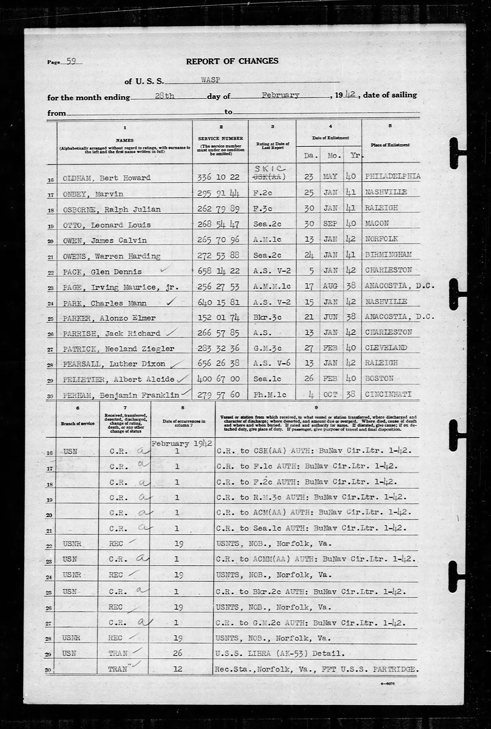 He served on the USS Wasp. He was born in 1916 and was 26 years old when he died. He was officially declared dead on 16 September 1943.