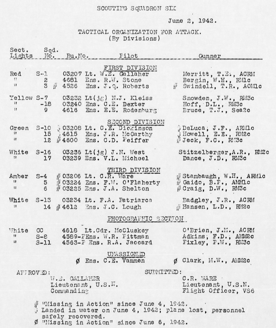 In January 1941, he was transferred to Scouting Squadron 5, aboard the carrier USS Yorktown (CV-5). In early 1942, Lt. Ware was reassigned to Scouting Squadron 6 aboard the Enterprise and it was from her deck that he flew into naval history when the Battle of Midway erupted on June 4.