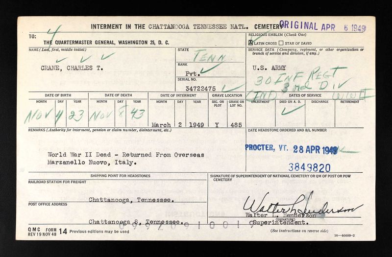 - Burial/Memorial Location: Chattanooga National Cemetery, Chattanooga, TN