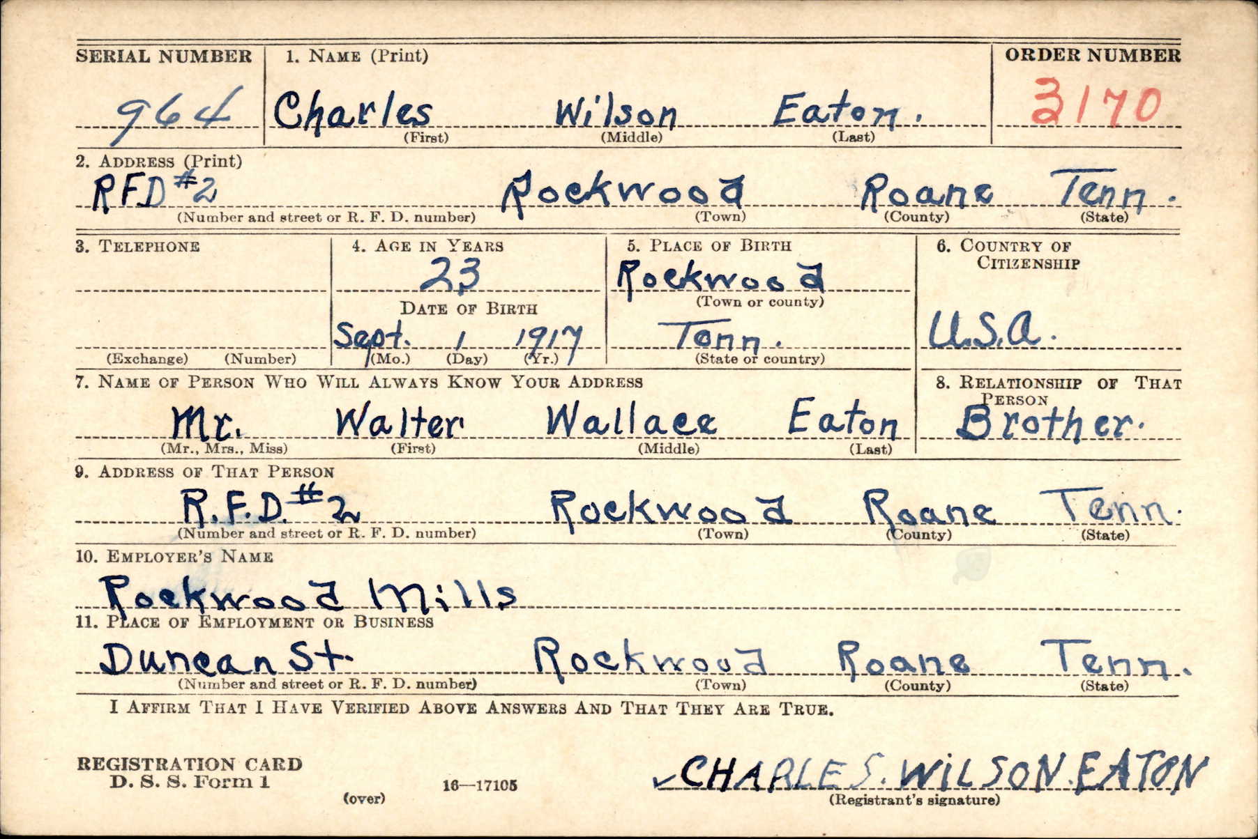 Charles Wilson Eaton was the son of General George Washington Eaton and Grace May Pemberton.