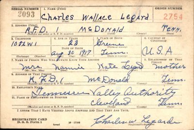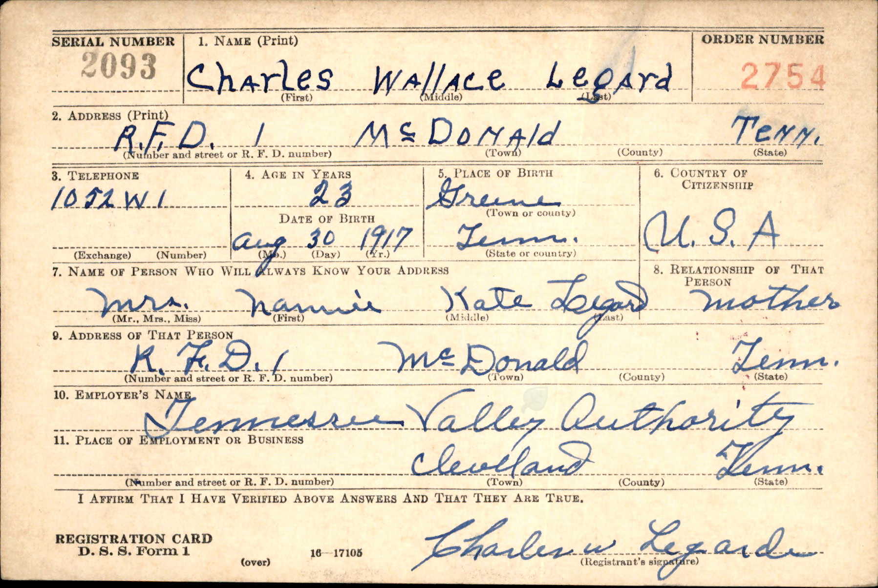 Mother: Mrs. Nannie Kate LeGarde, Rt 1, McDonald, TN