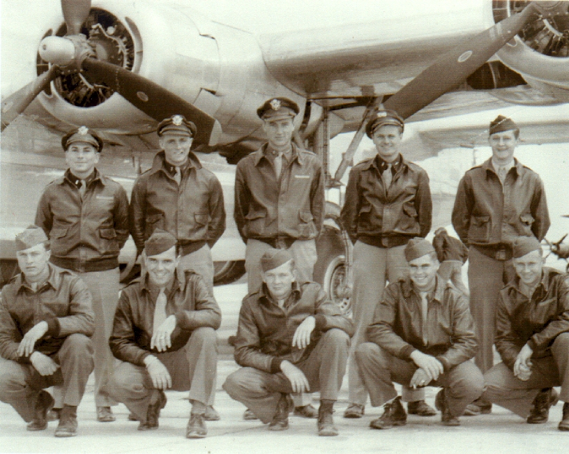 Back l-r: Lt. Wm. N. Salomon, Lt. Kenneth L. Hutzel, Lt. O. A. Jones, F/O Walter L. Jensen and Sgt. Charles Winston Runnion.