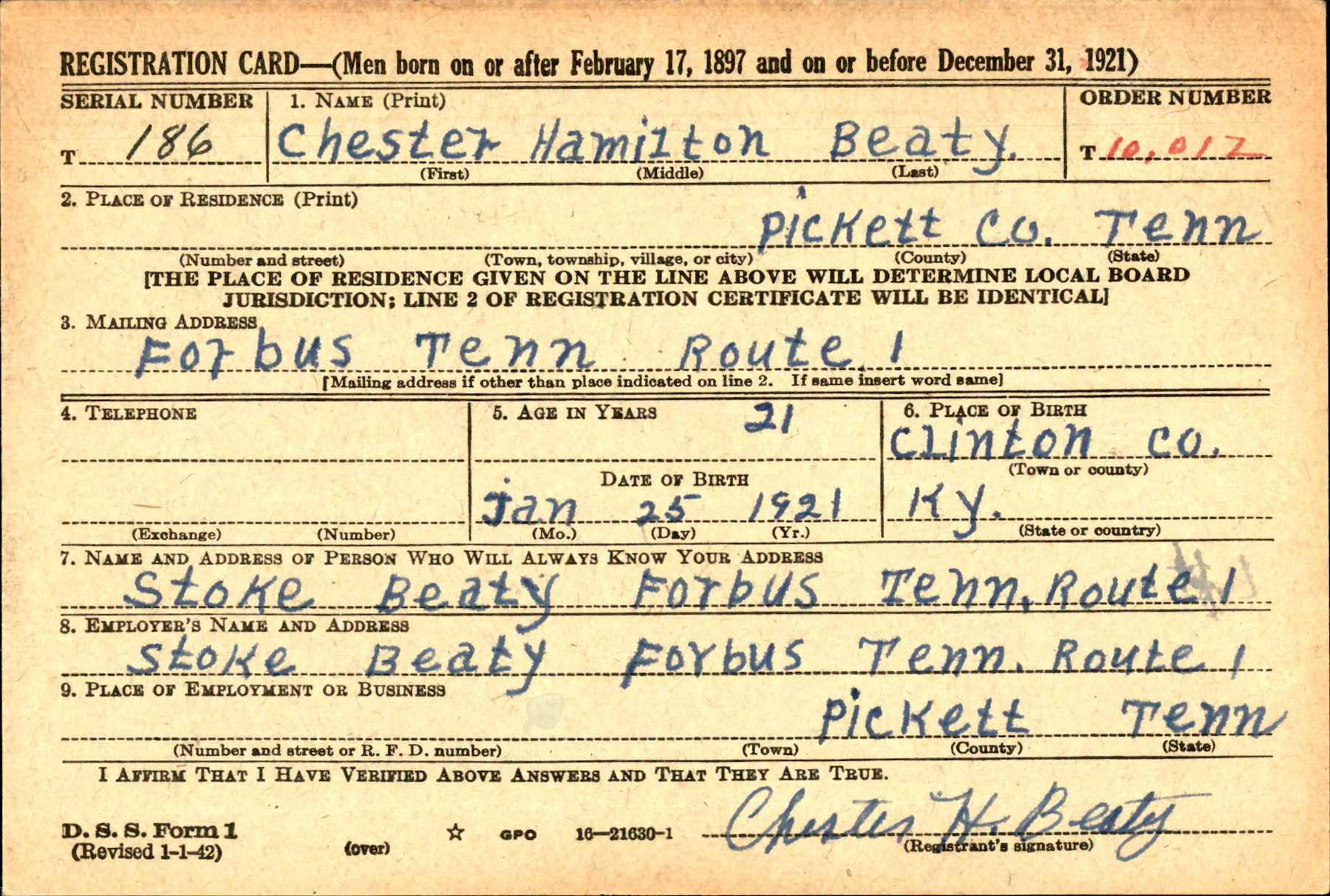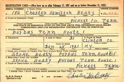 Chester Hamilton Beaty was born on 25 January 1921 in Clinton, Kentucky. He was the son of Stokley Long Beaty and Effie Lee Dalton.