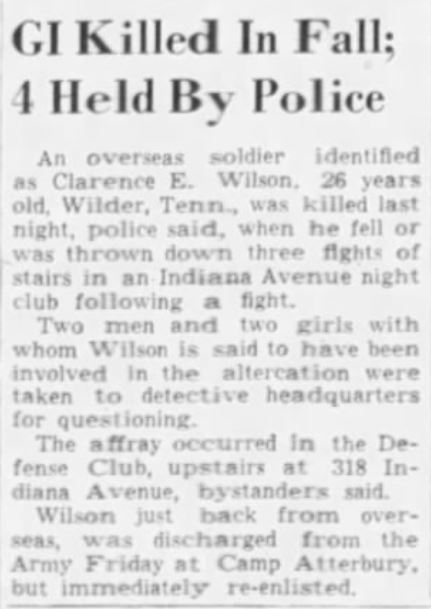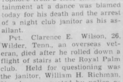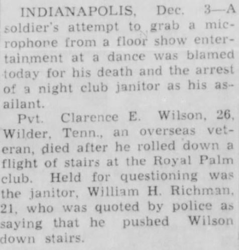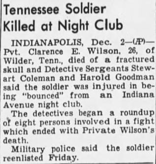 Died non Battle 1 December 1945 of a fractured skull in Indianapolis. He was an overseas veteran.
