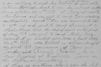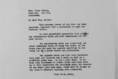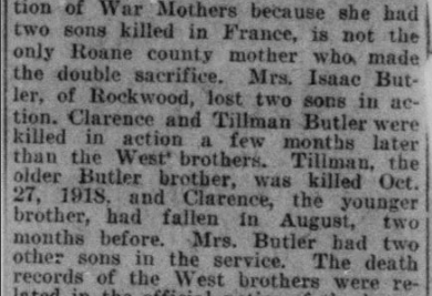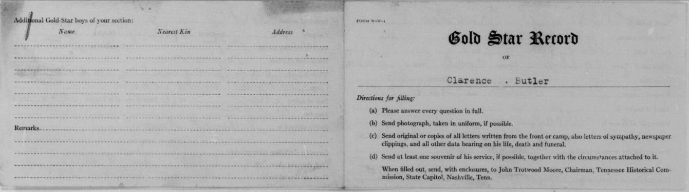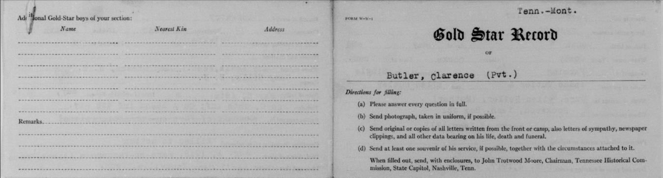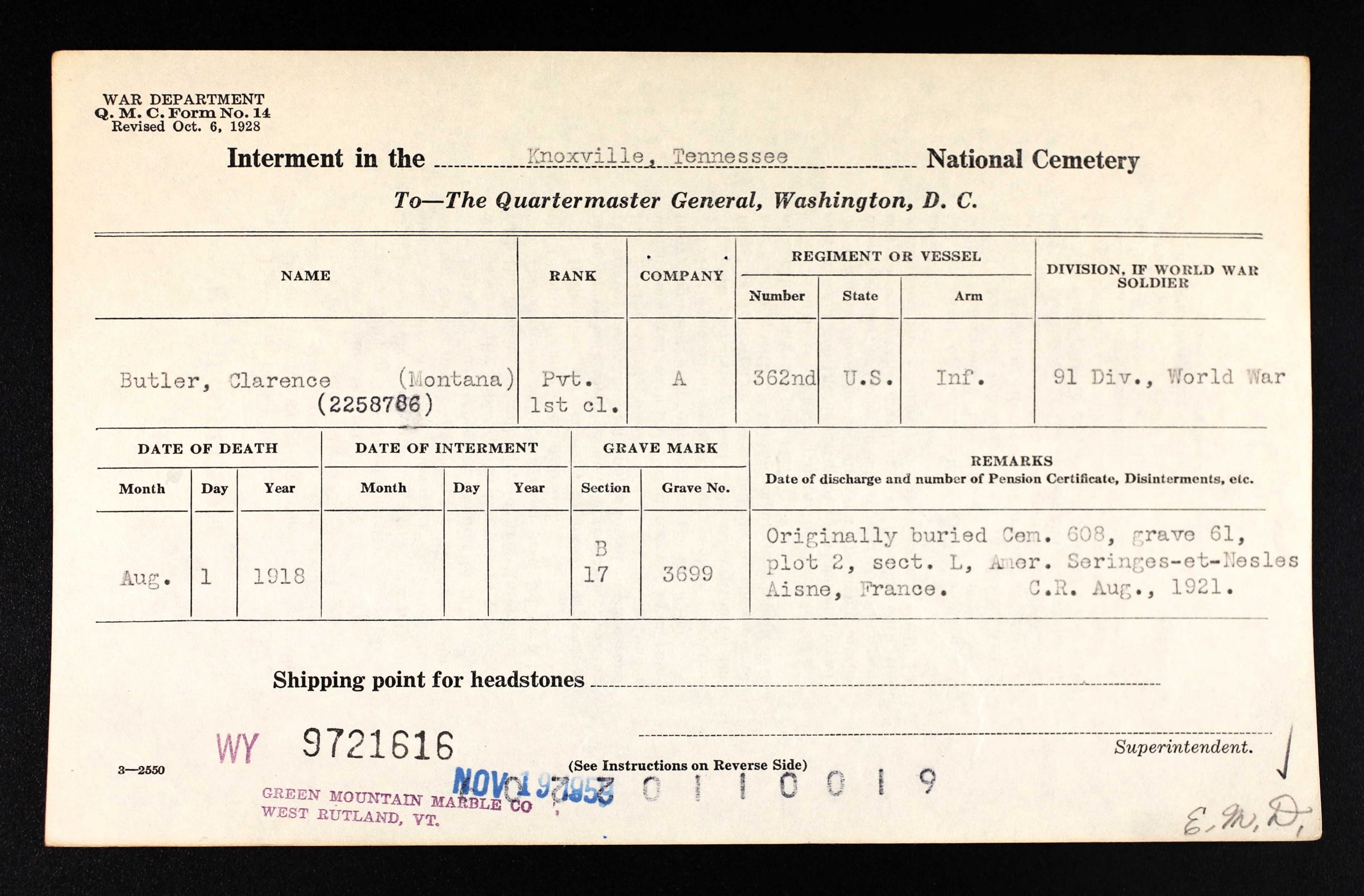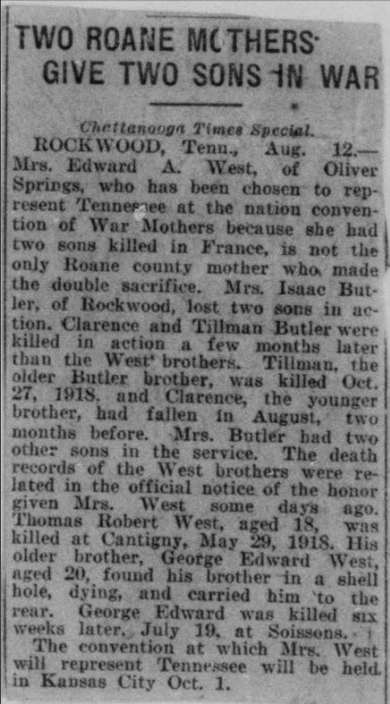 His brother Tillman Butler was killed in action at St. Juvin in France and also buried at Knoxville National Cemetery.