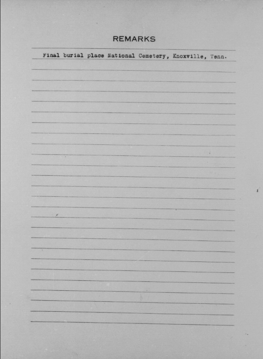 - Burial/Memorial Location: Knoxville National Cemetery, Knoxville, TN
