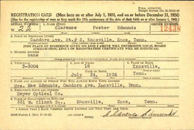 Clarence Foster Edmunds was the son of Hubert Lester Edmunds and Buella Mae Needham.