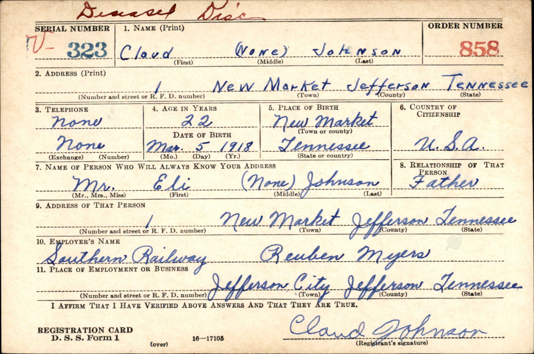 Claude Johnson was the son of Eli Johnson and Adelaide Howell.