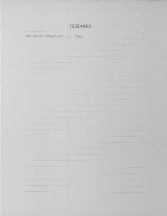 - Burial/Memorial Location: Piney Grove Baptist Church Cemetery, Surgoinsville, Hawkins County, TN