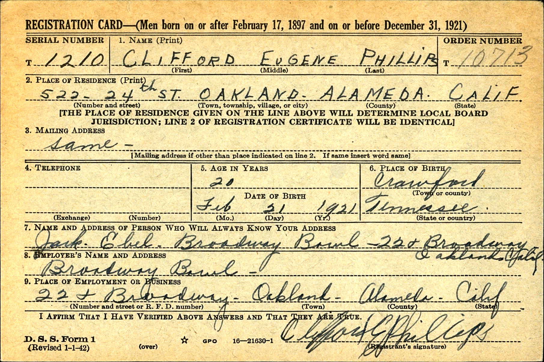 Clifford Eugene Phillips was the son of Rinnie Farley Phillips and Alberta “Bertie” Looper.