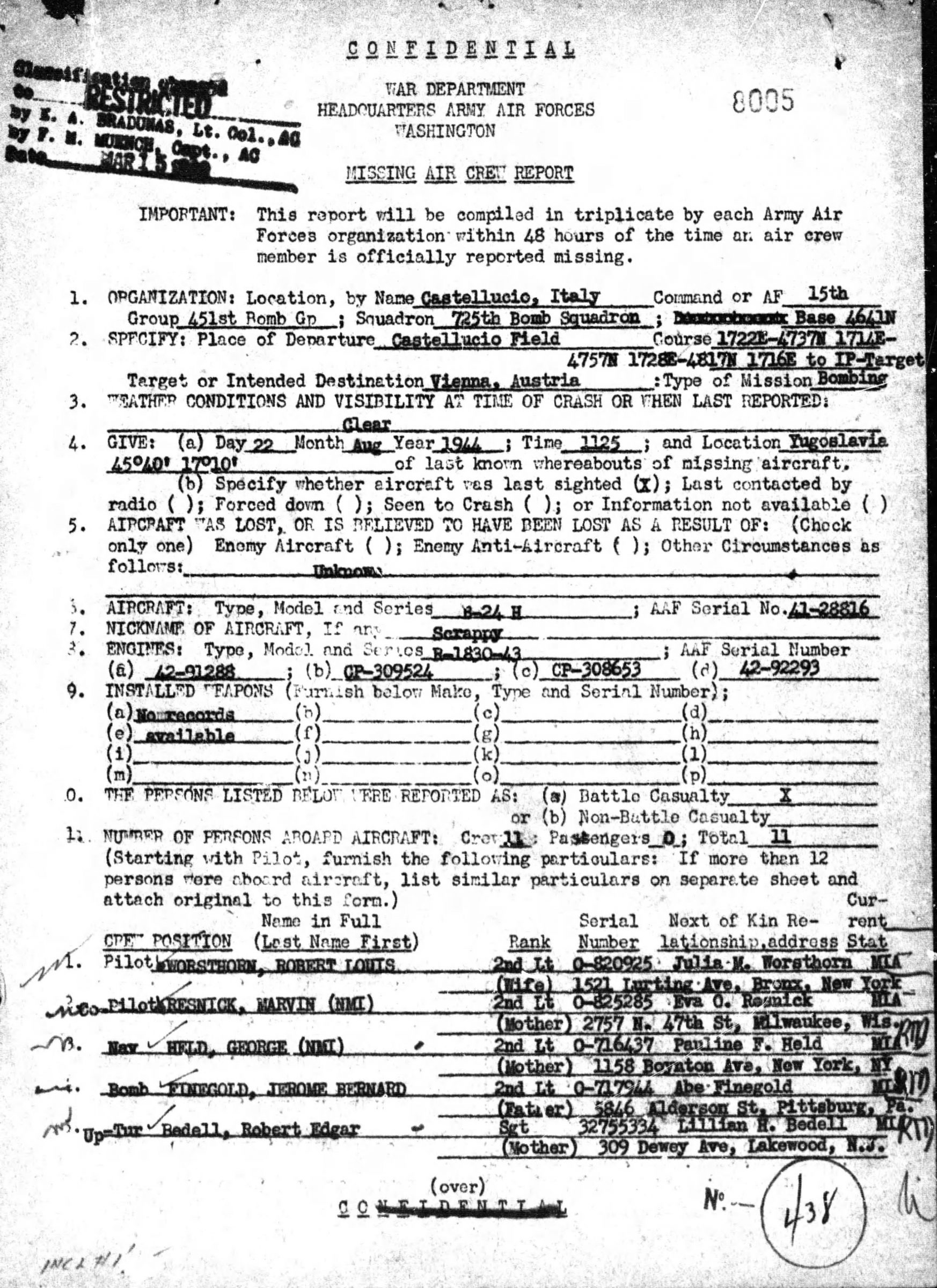 - Division/Assignment: 451st Bomber Group, 725th Bomber Squadron