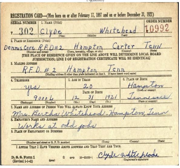 Clyde Whitehead was the son of Daniel “Dan” Whitehead and Bertha D. War.