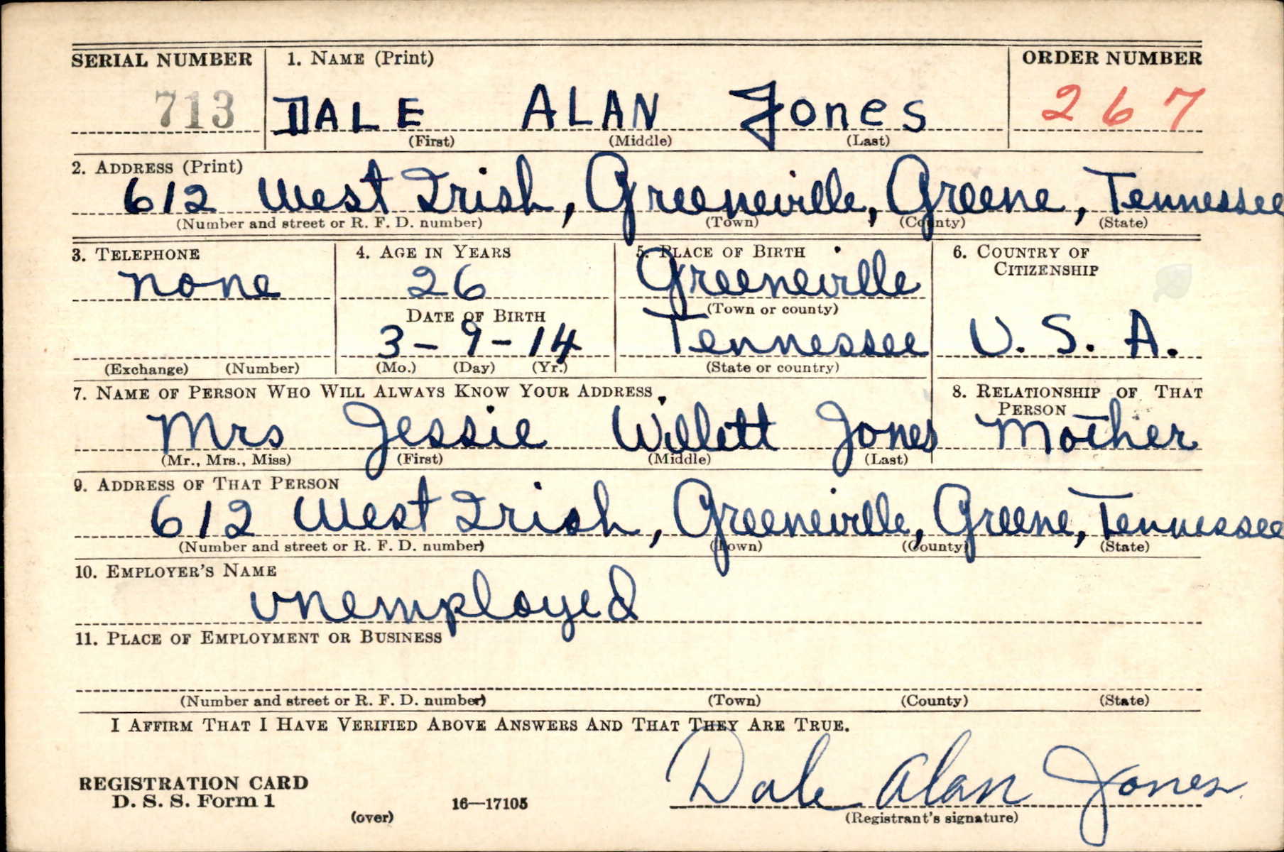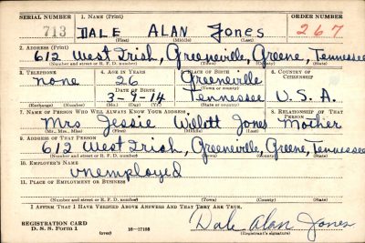 Dale Alan Jones was the son of Jesse Moses Jones and Jessie Willett.