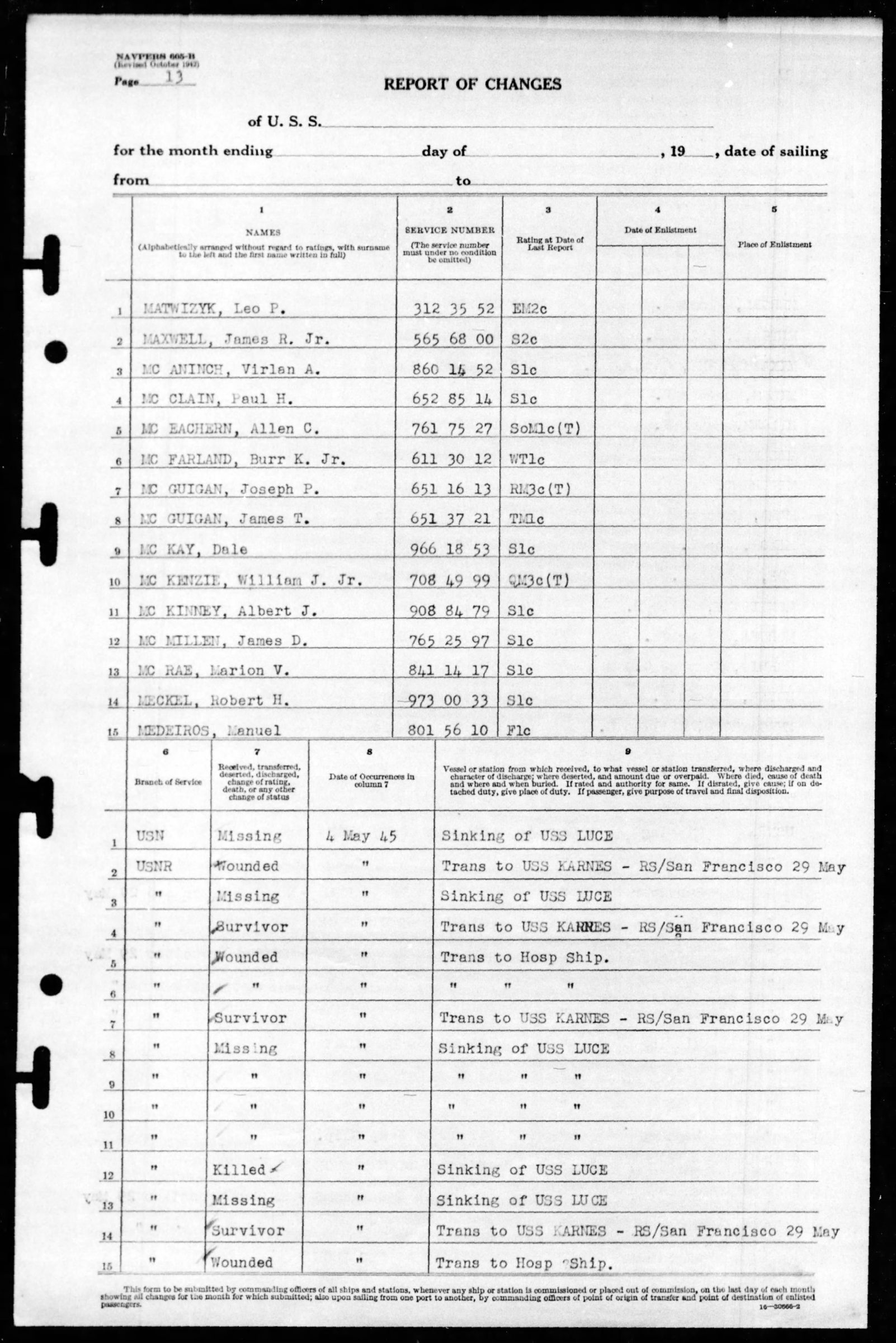 Shortly after midnight on May 4, the LUCE observed from its picket station off Zampa Point, Okinawa, two planes closing in. The luck of the Luce held up, though, and the planes turned away without pressing the attack.