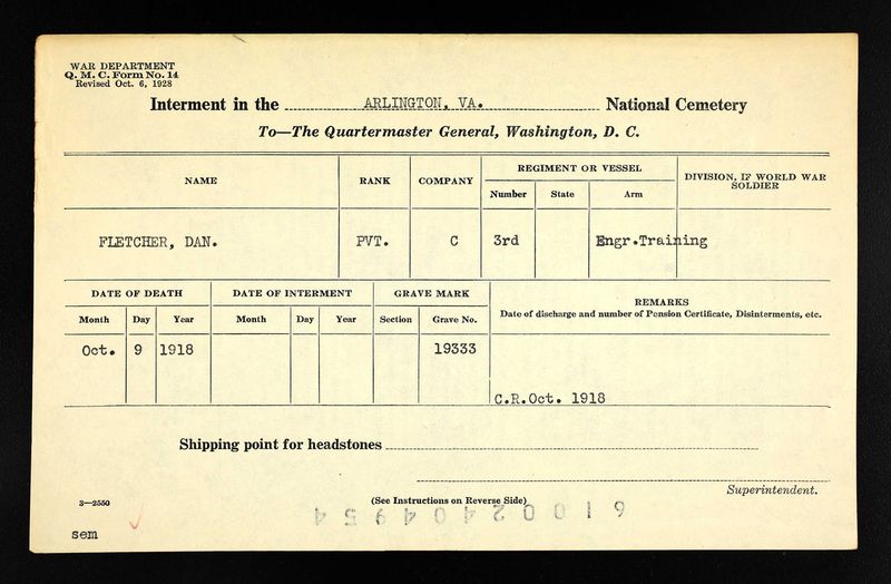 - Burial/Memorial Location: Arlington National Cemetery, Arlington, Arlington County, Virginia
