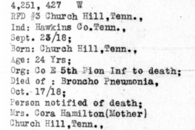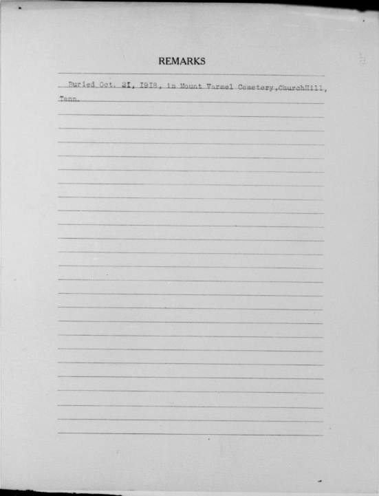 - Burial/Memorial Location: Mount Carmel Cemetery, Church Hill, Hawkins County, Tennessee