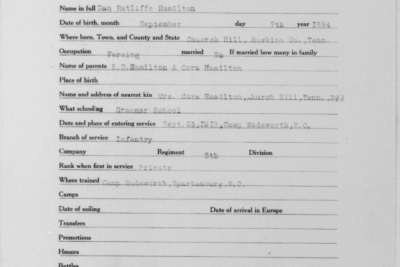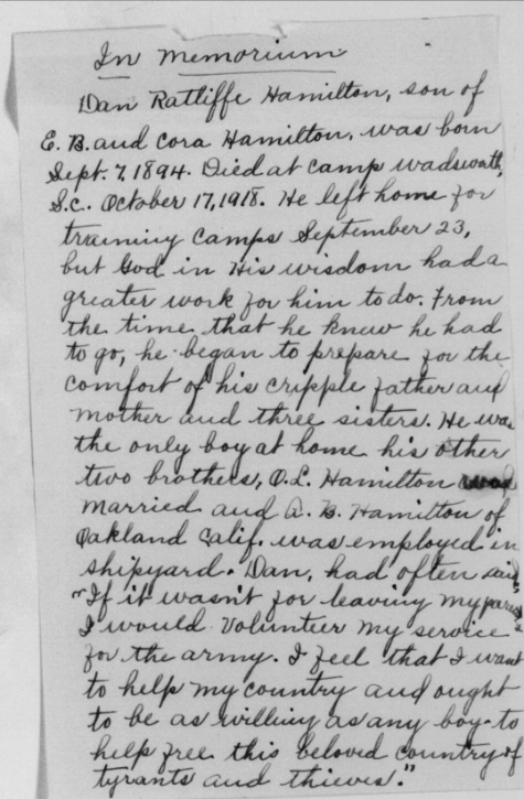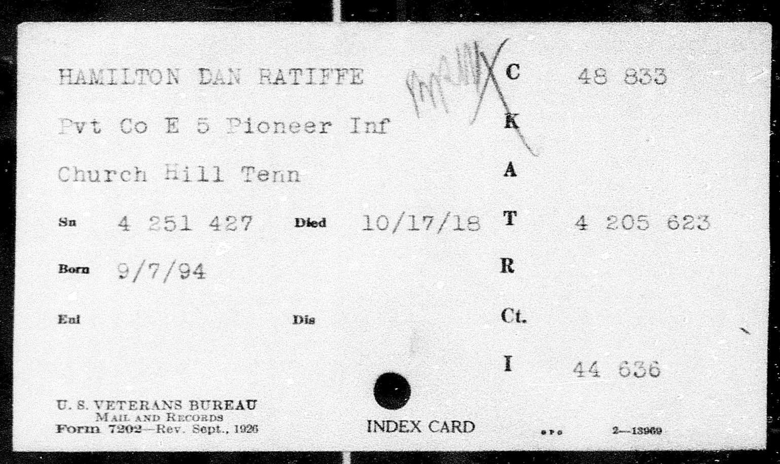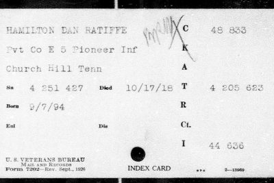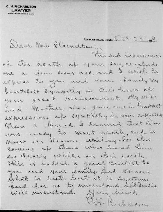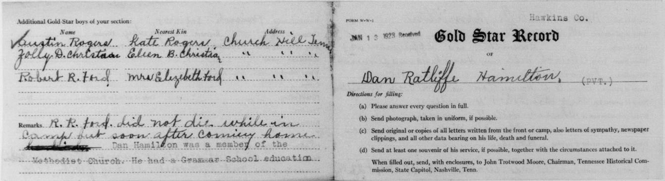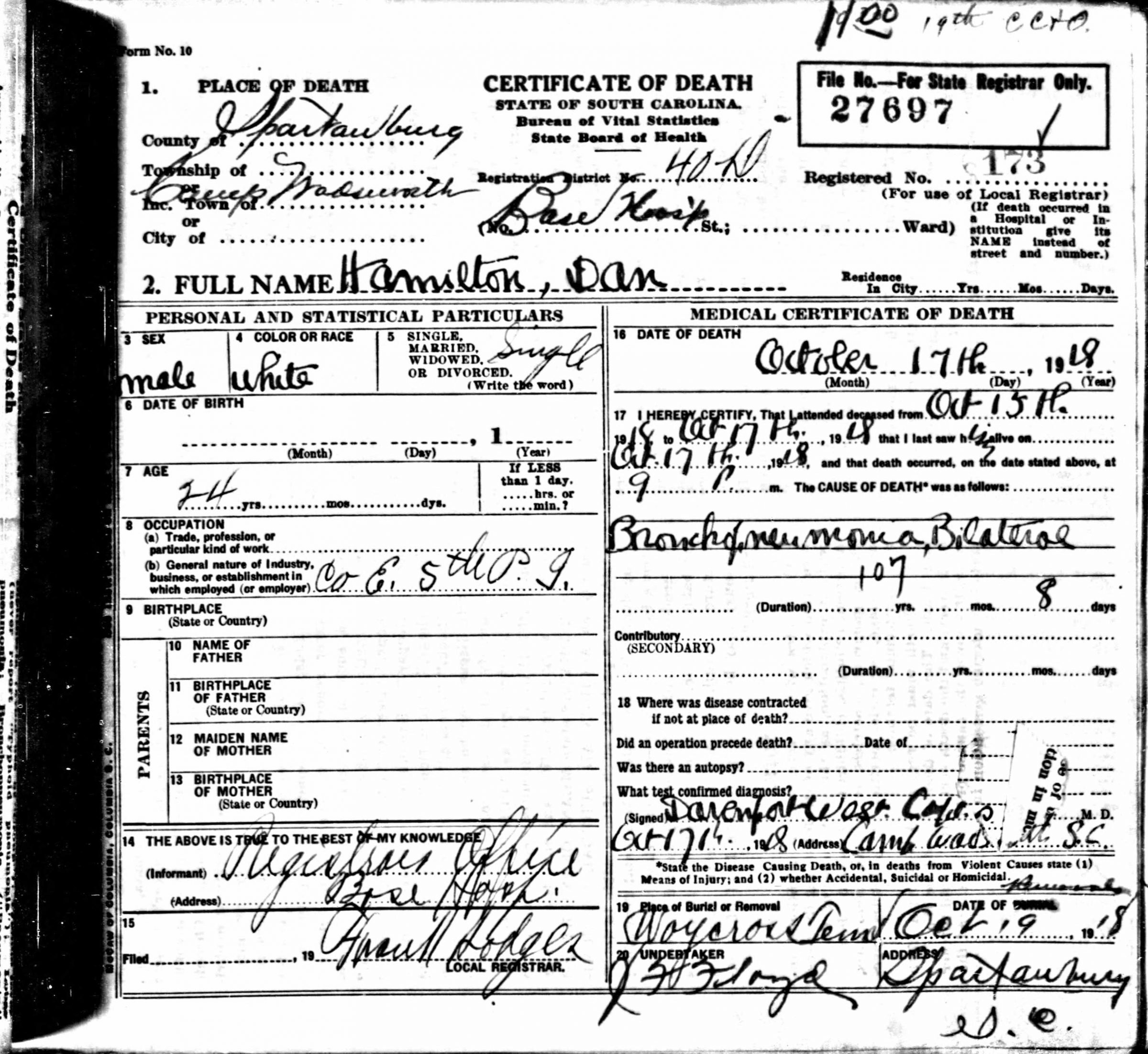 Dan or Daniel Ratliff Hamilton was born in Church Hill, Tennessee. He was the son of Edward Brandon Hamilton and Corena Brown.