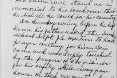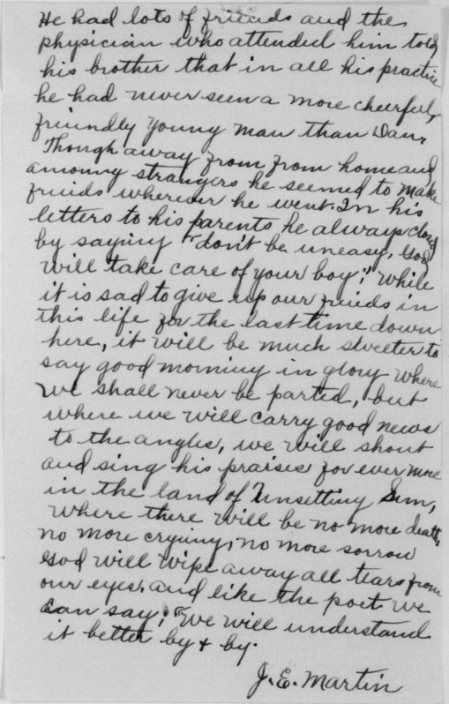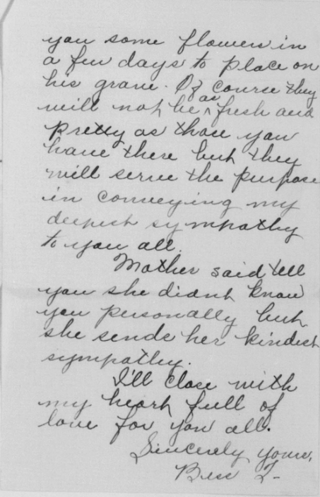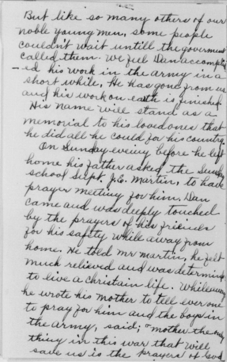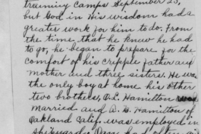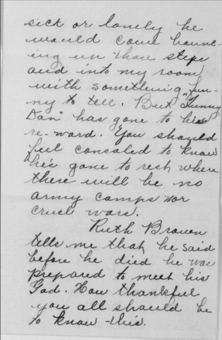 He died at the age of 24 at the Base Hospital at Camp Wadsworth, Spartanburg, South Carolina of Broncho Pneumonia. He served with the 5th P.I. Company E.
