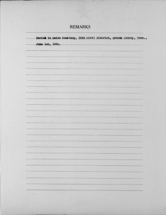 - Burial/Memorial Location: Haire Cemetery, Greene County, TN