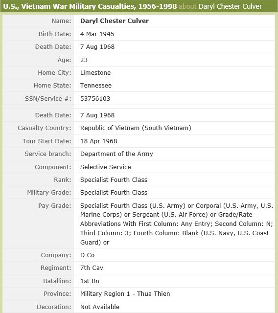 - Division/Assignment: 7th Cavalry Regiment, 1st Air Cavalry Division