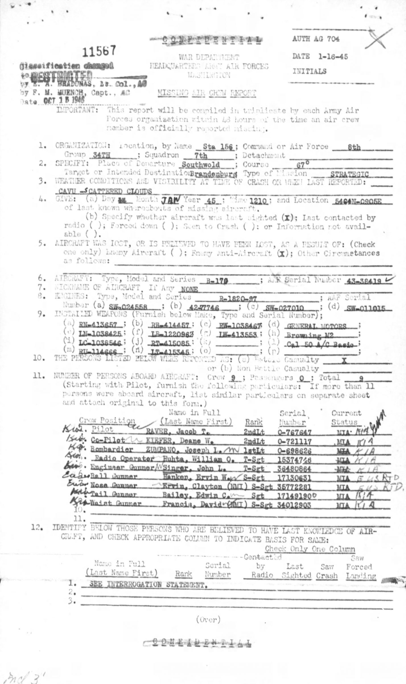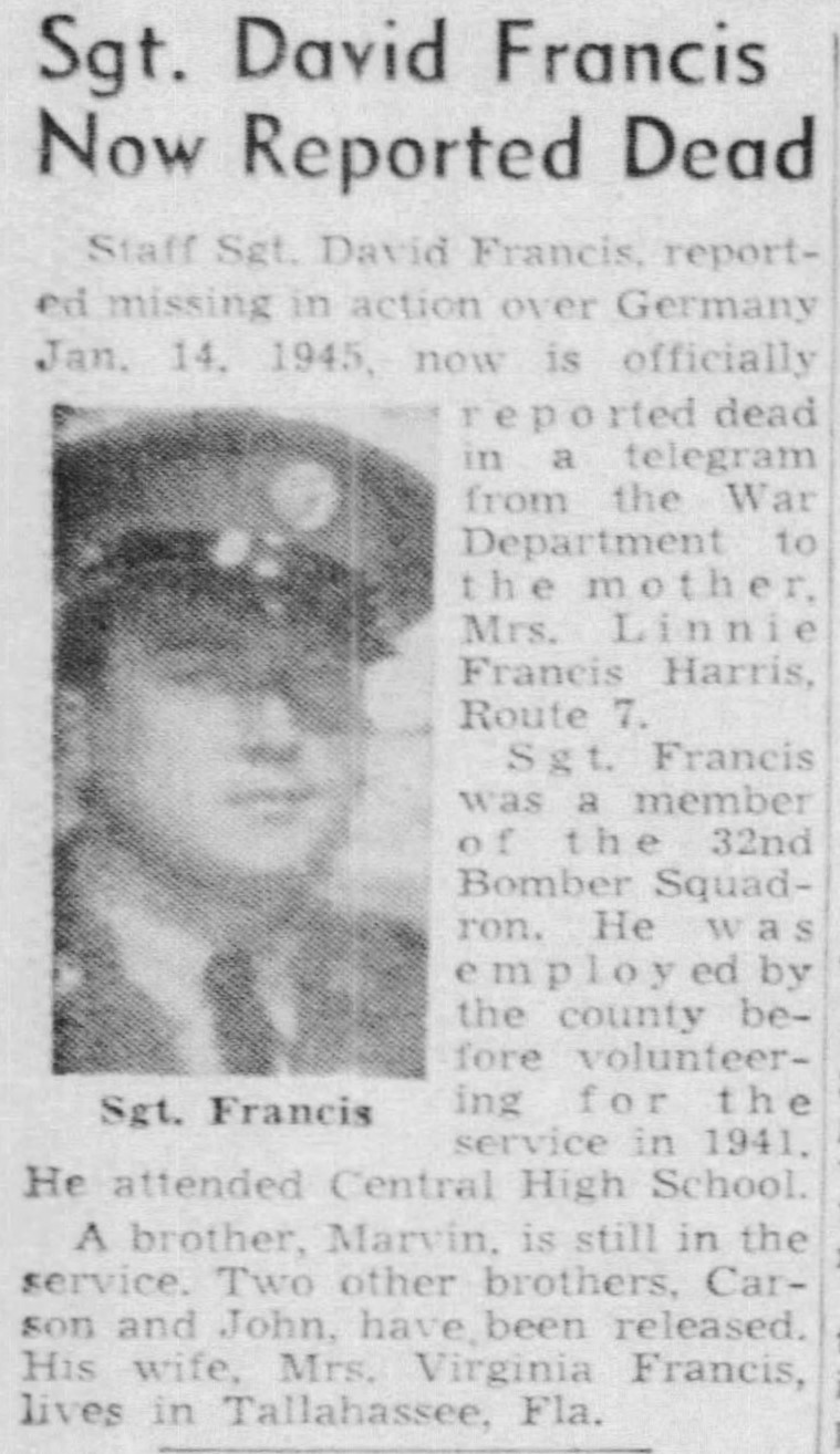 Zumpano and Francis were KIA. The rest of the crew completed a 35 mission tour
