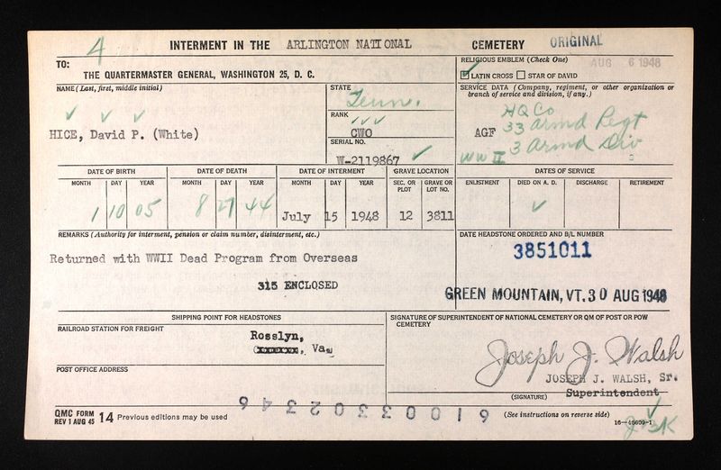 - Burial/Memorial Location: Arlington National Cemetery, Arlington, VA