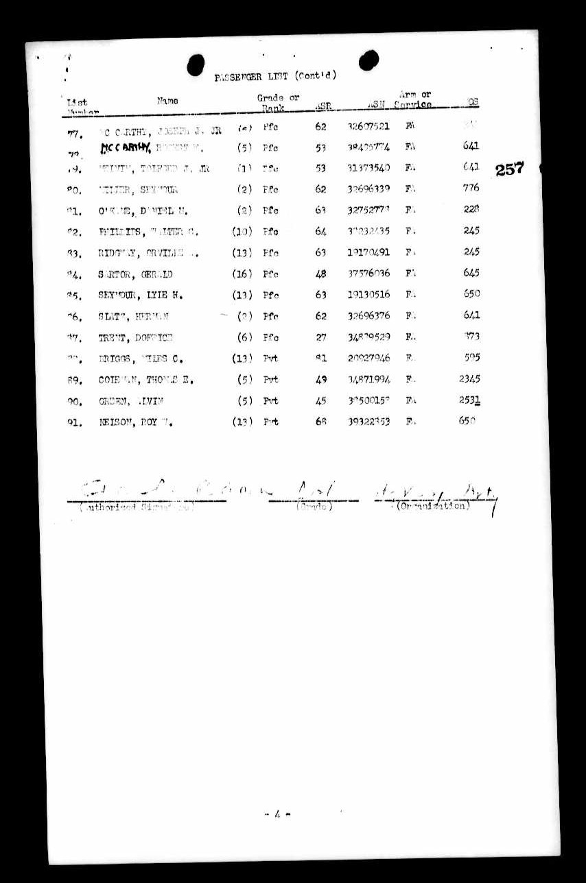 - Service Branch: Army/Army Air Forces