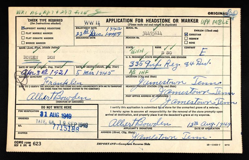 - Division/Assignment: 335th Infantry Regiment, 84th Infantry Division