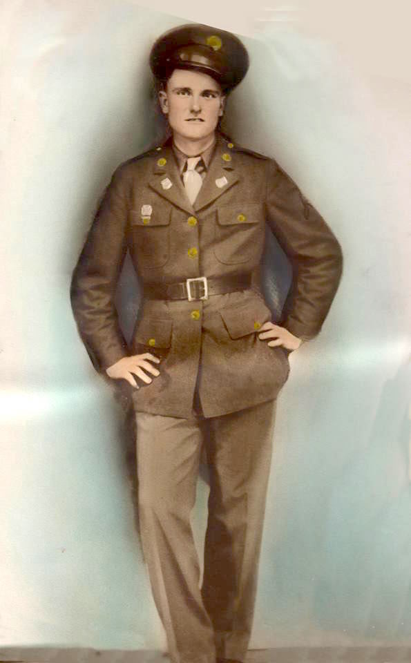 The featured photo was provided by his grand nephew, Todd McKinley, who writes: “This photo was taken before deploying to WWII. He was my Great Uncle, and his Brother, my Grandfather, spoke fondly of him and would always tell all of us Grandchildren stories about Earl while we were looking at the photo.”