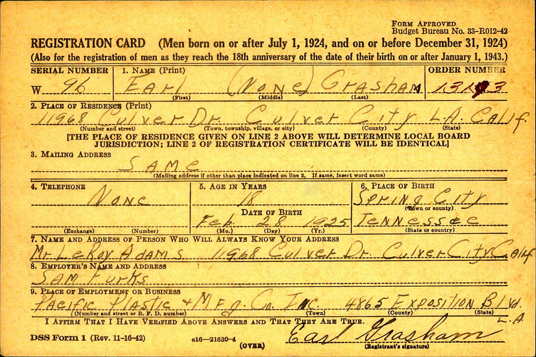 Earl “Jack” Grasham was born in Spring City, Tennessee. He was the son of Charles Drayton Grasham and Ona Pearl Brown.
