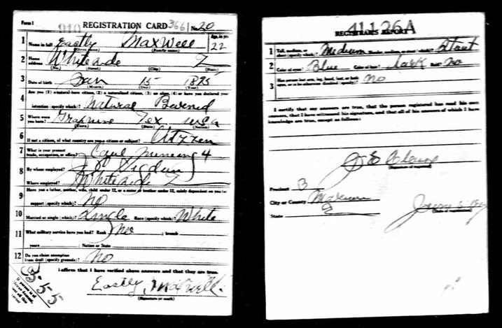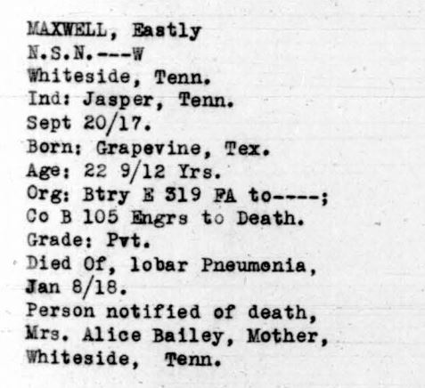Eastley (also spelled as Eastly) Maxwell was born 15 January 1895, Grapevine, Texas, son of Alice Bailey