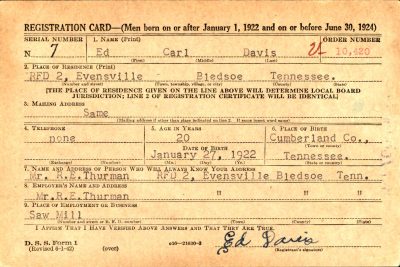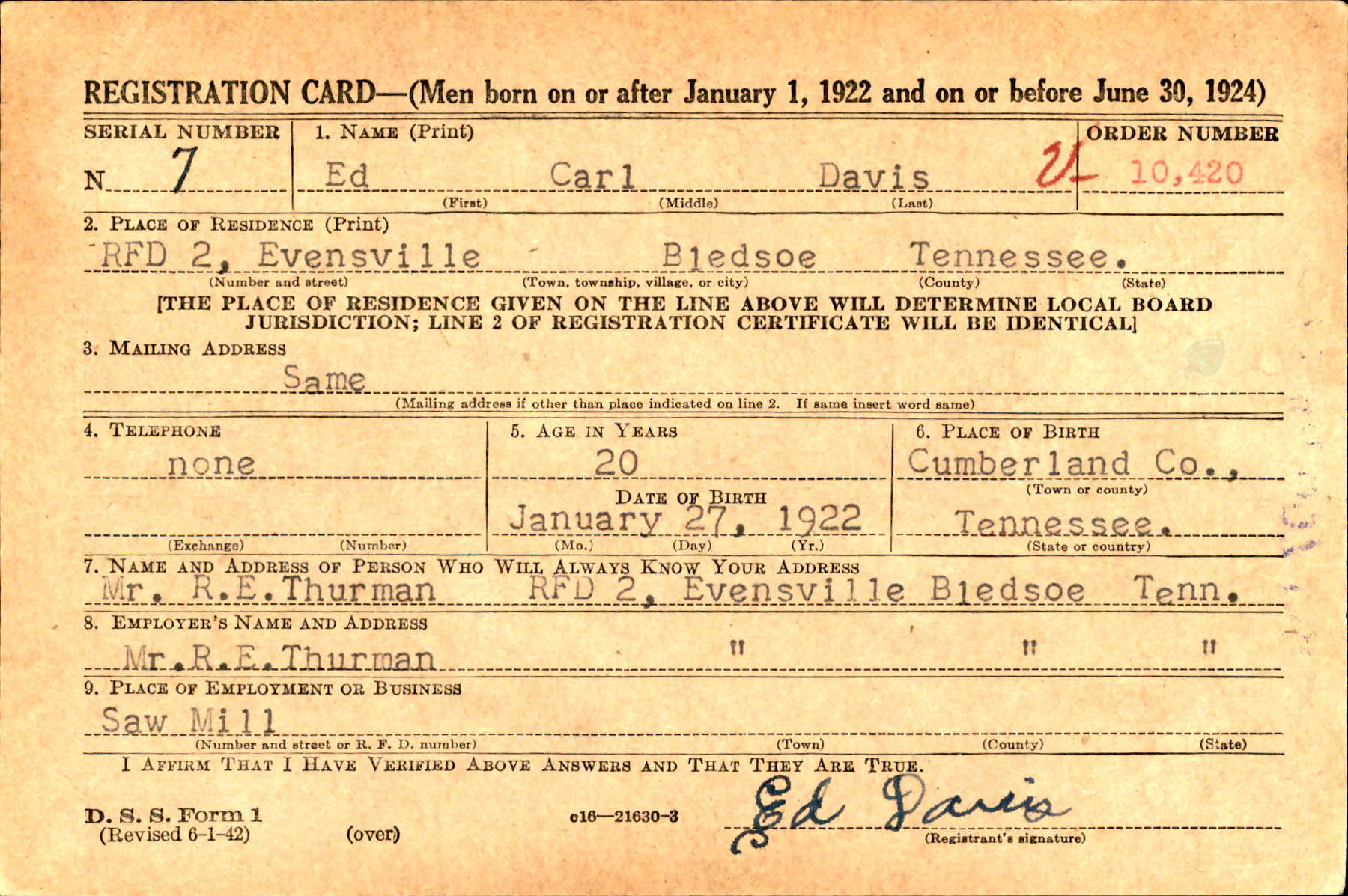 Ed Carl Davis was born in Cumberland County, Tennessee