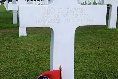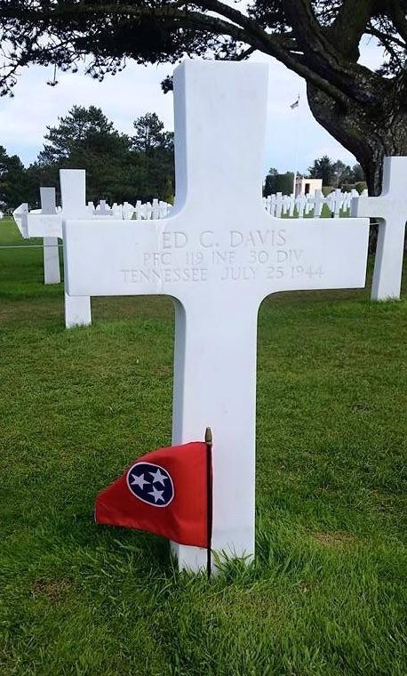 PFC Davis was killed in action on the 25th of July 1944 and is interred at the Normandy American Cemetery, Colleville-sur-Mer, France, plot F, row 3, site 45.