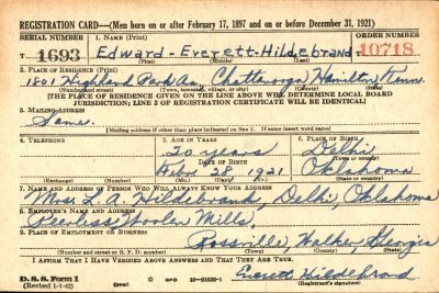 Edward Everett Hildebrand was born on 28 February 1921 in Oklahoma to Luther Alfred Hildebrand and and Bertie Ethel Dewees. He was married to Ruth Deweber.