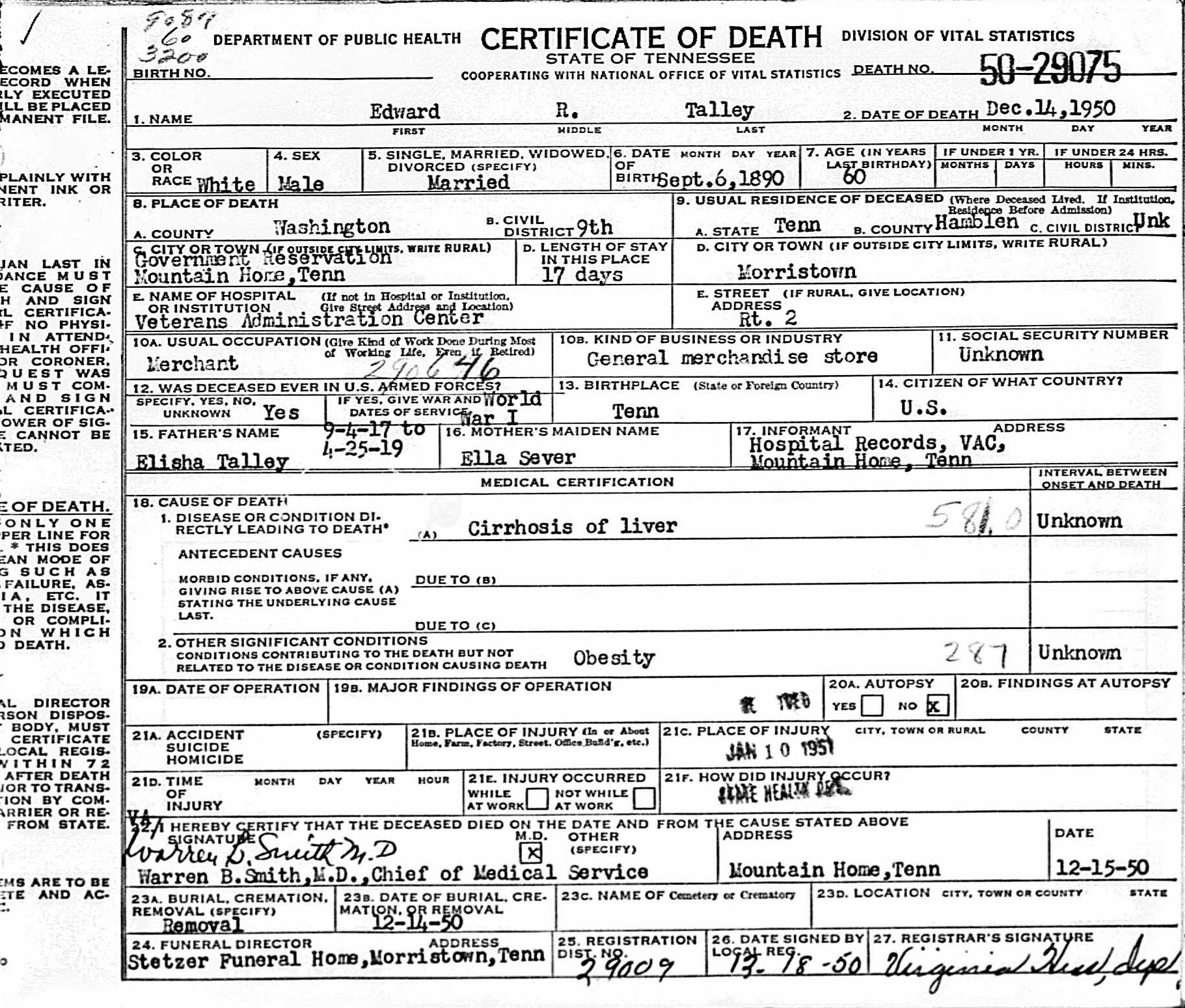 - Burial/Memorial Location: Bent Creek Cemetery, Whitesburg, Hamblen County, TN