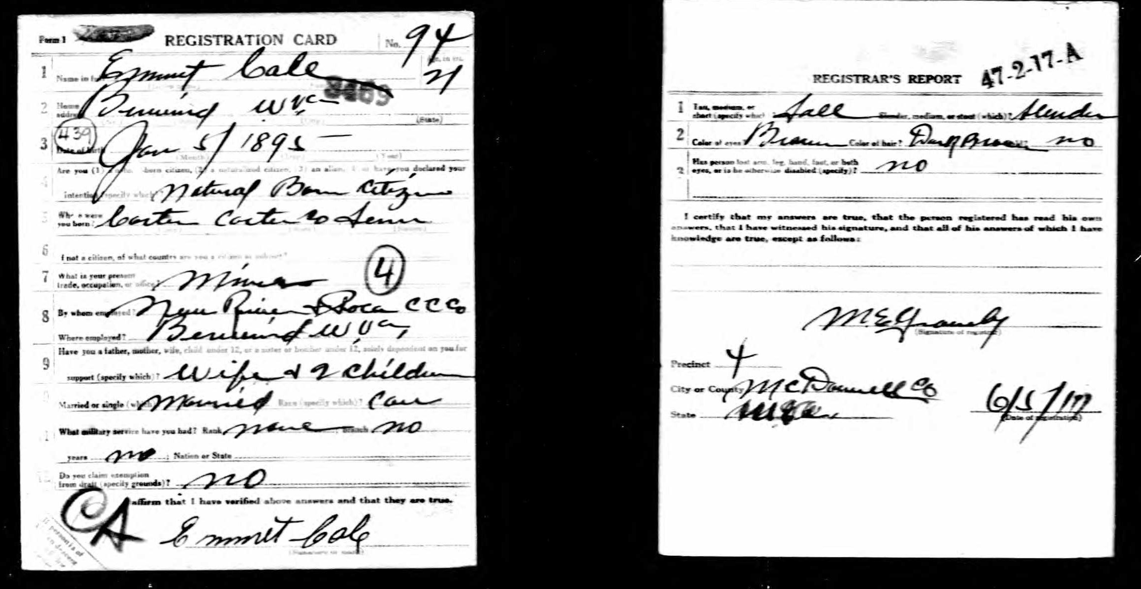 Private First Class Emmett Cole entered service in the Army at Camp Lee, West Virginia. He served in the 318th Infantry Regiment, 80th Division AEF. He died on 4 October 1918 and is interred at H,36,7 Meuse-Argonne American Cemetery, Romagne, France.