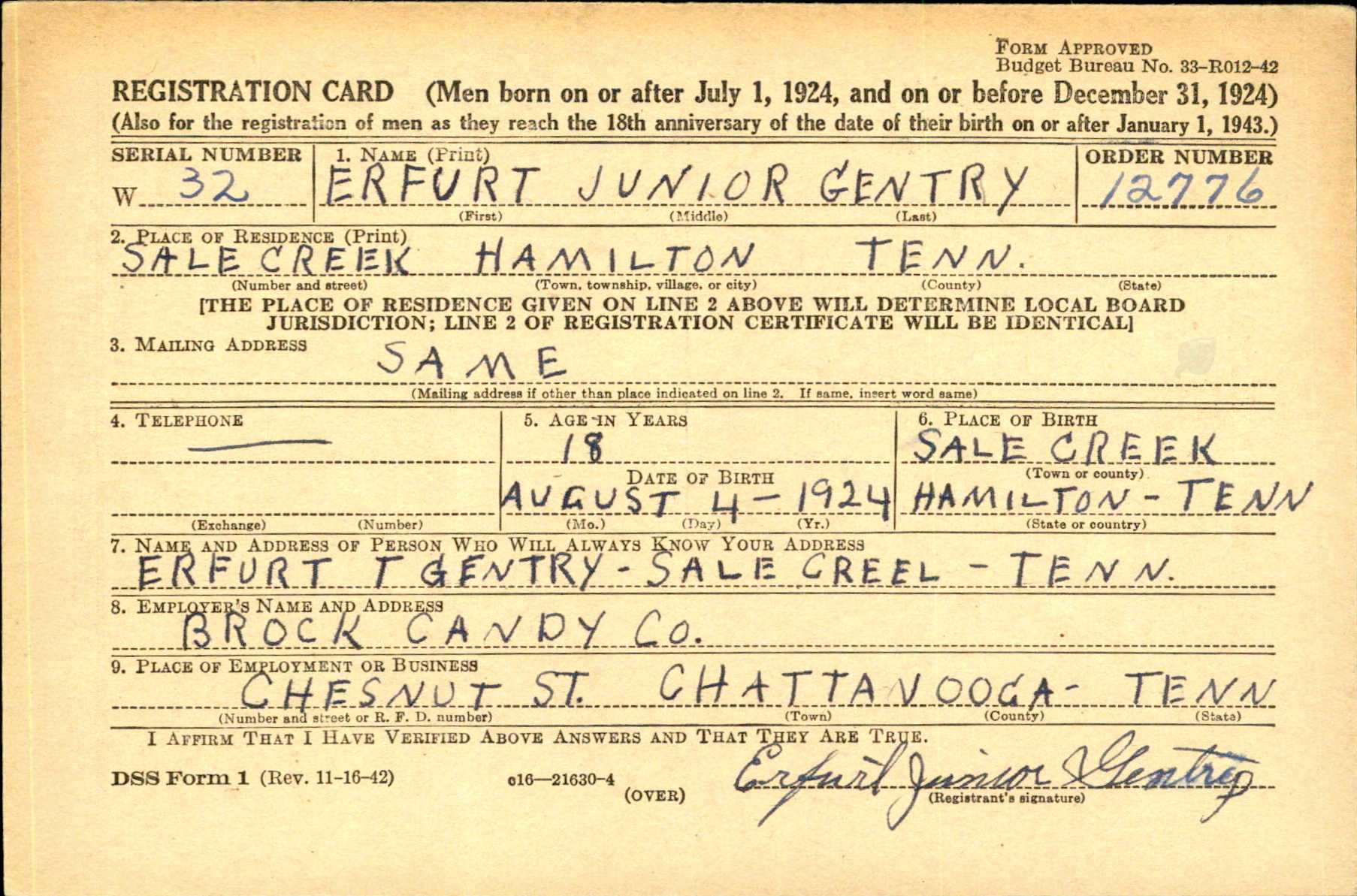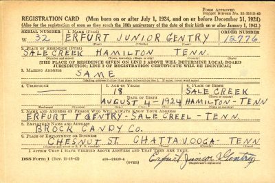Erfurt Junior Gentry was the son of Erfurt Thomas Gentry and Ada Illa Hodge.