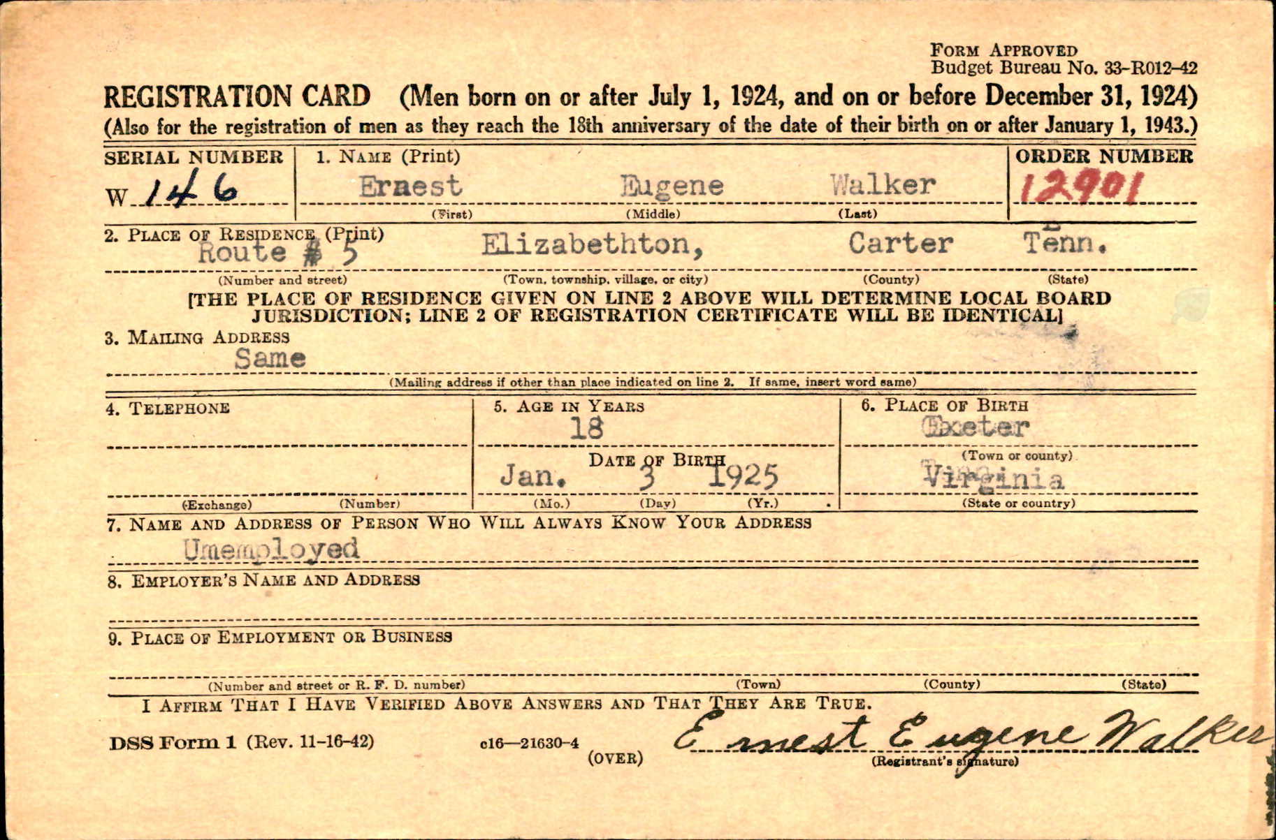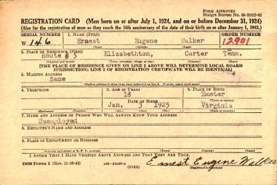 Ernest Eugene Walker was born on 30 January 1925, in Virginia. He was the son of Earl Wilson Walker and Lillie Mae Peters.