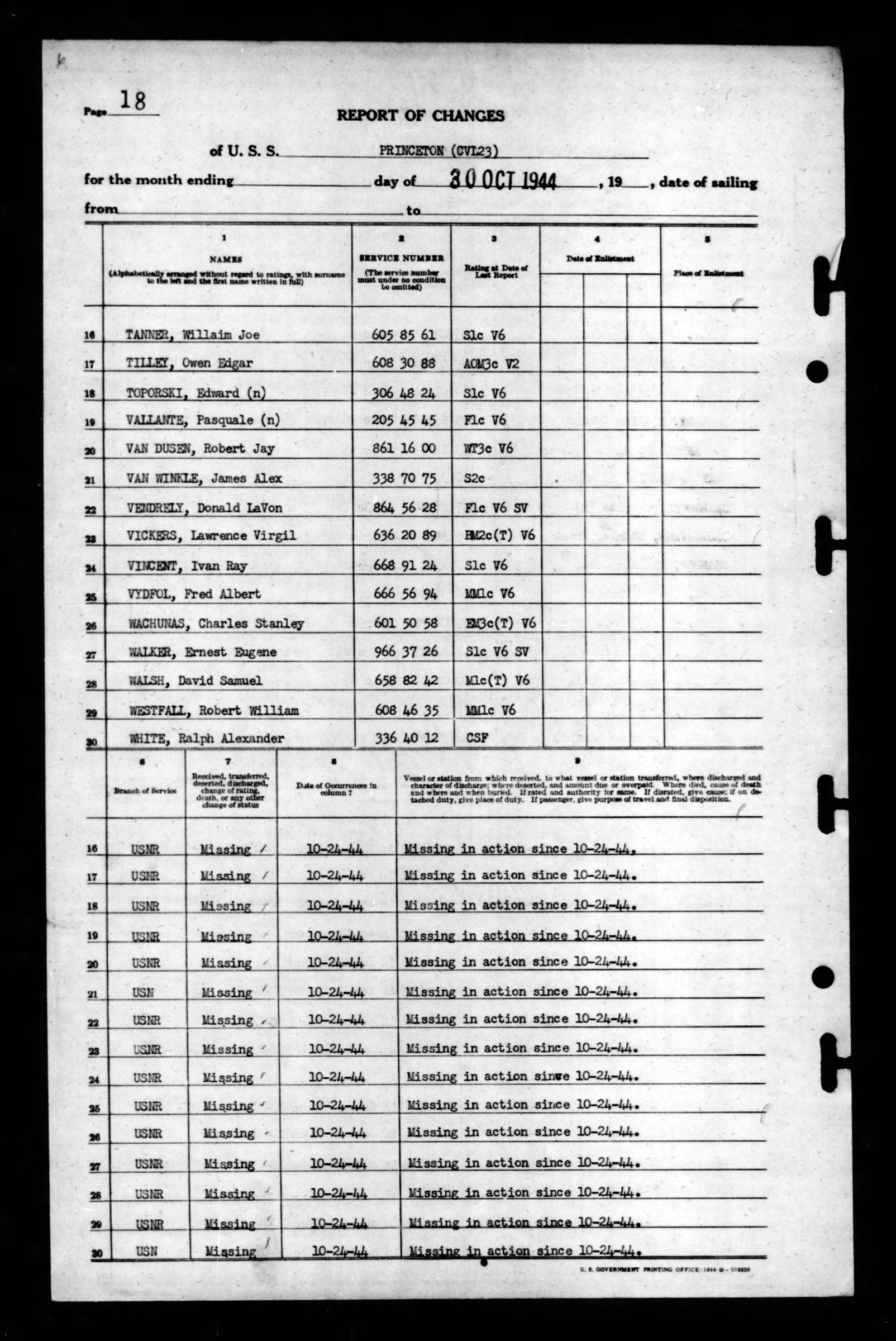 - Division/Assignment: USS Princeton (CVL23)