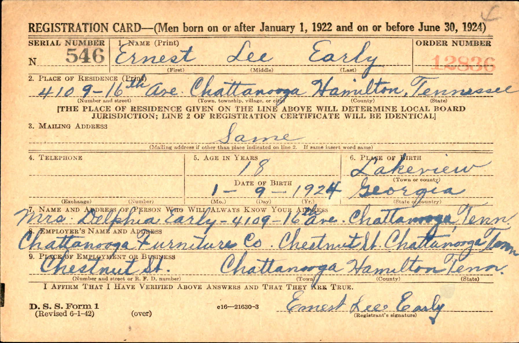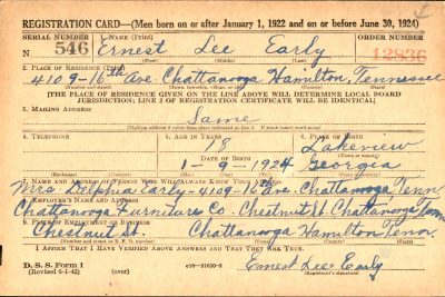 Ernest Lee Early was born at Lakeview, Georgia, the son of Abraham ‘Abe’ Early and Delphia Grace Martin.