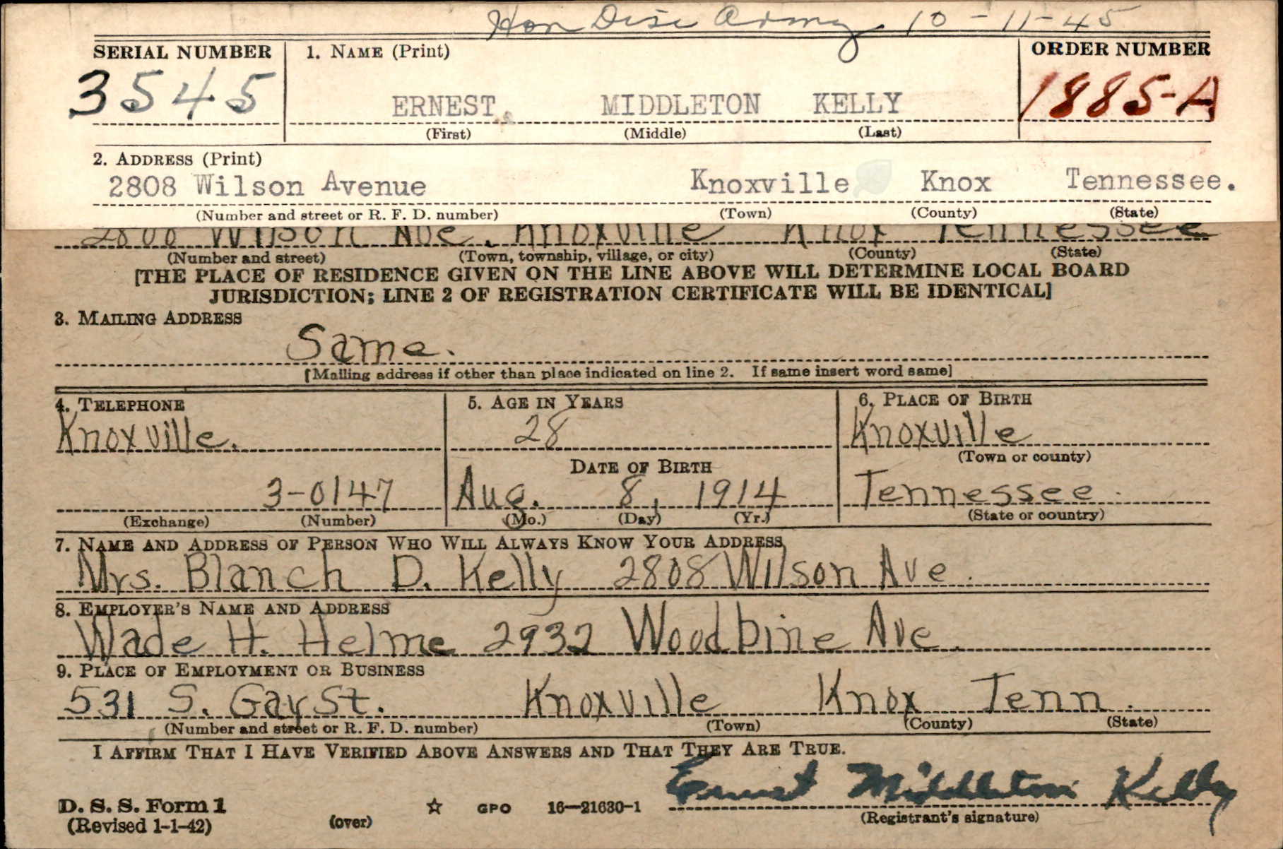 - Date of birth: 8 August 1914