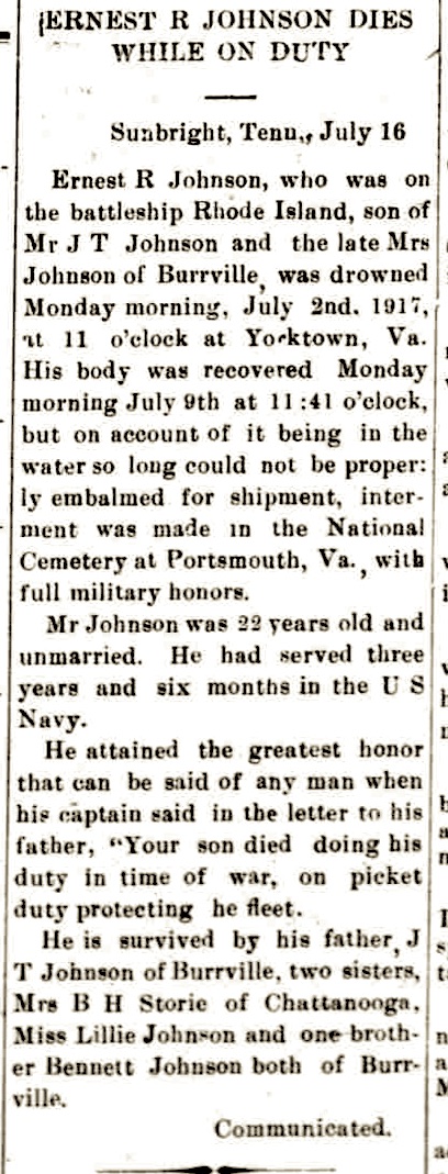 Father: Mr. Zachariah T. Johnson, Burrville, TN