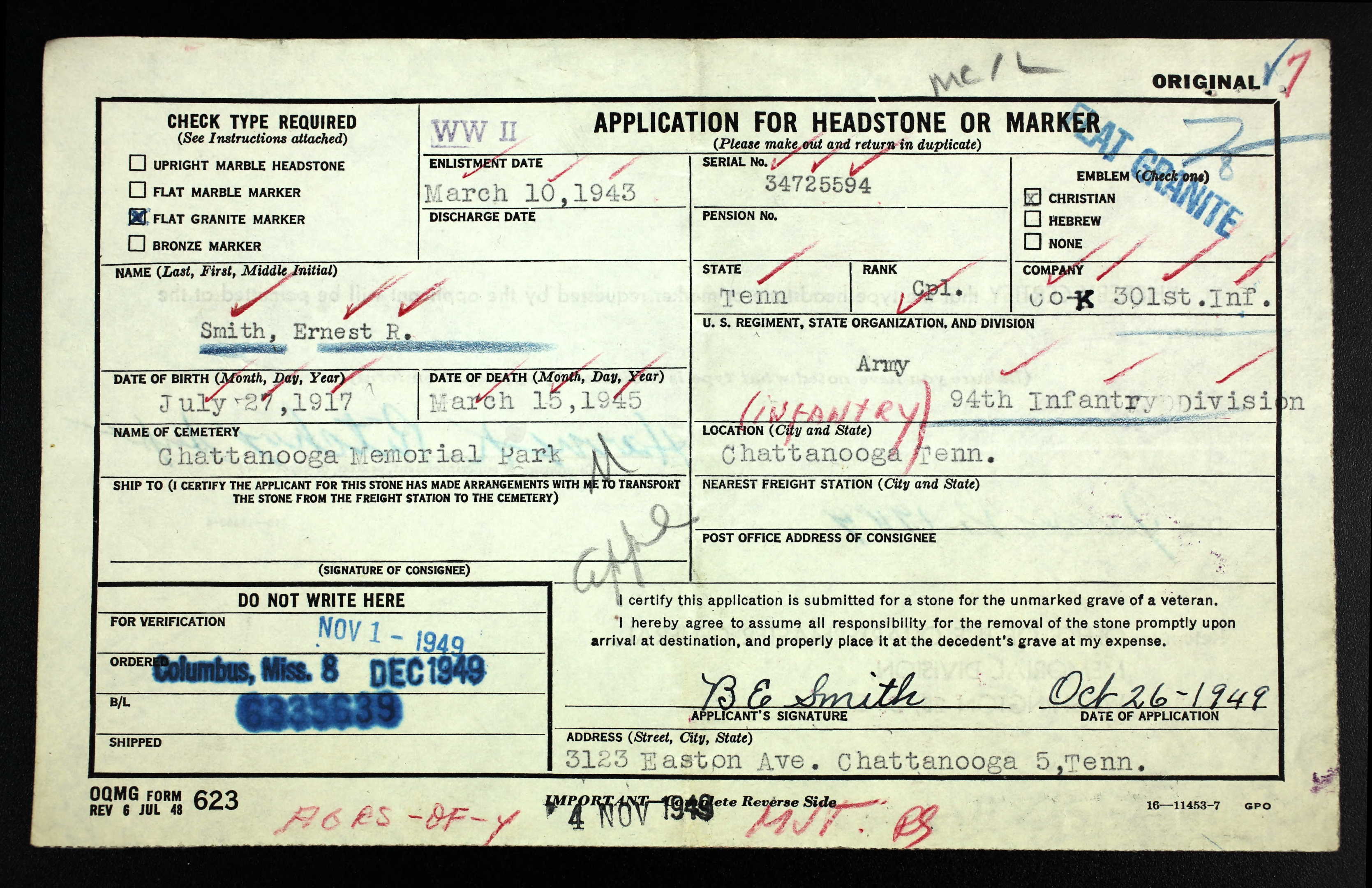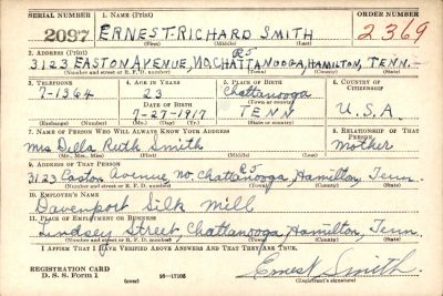 Ernest Richard Smith was born on 27 July 1917 at Chattanooga, Tennessee