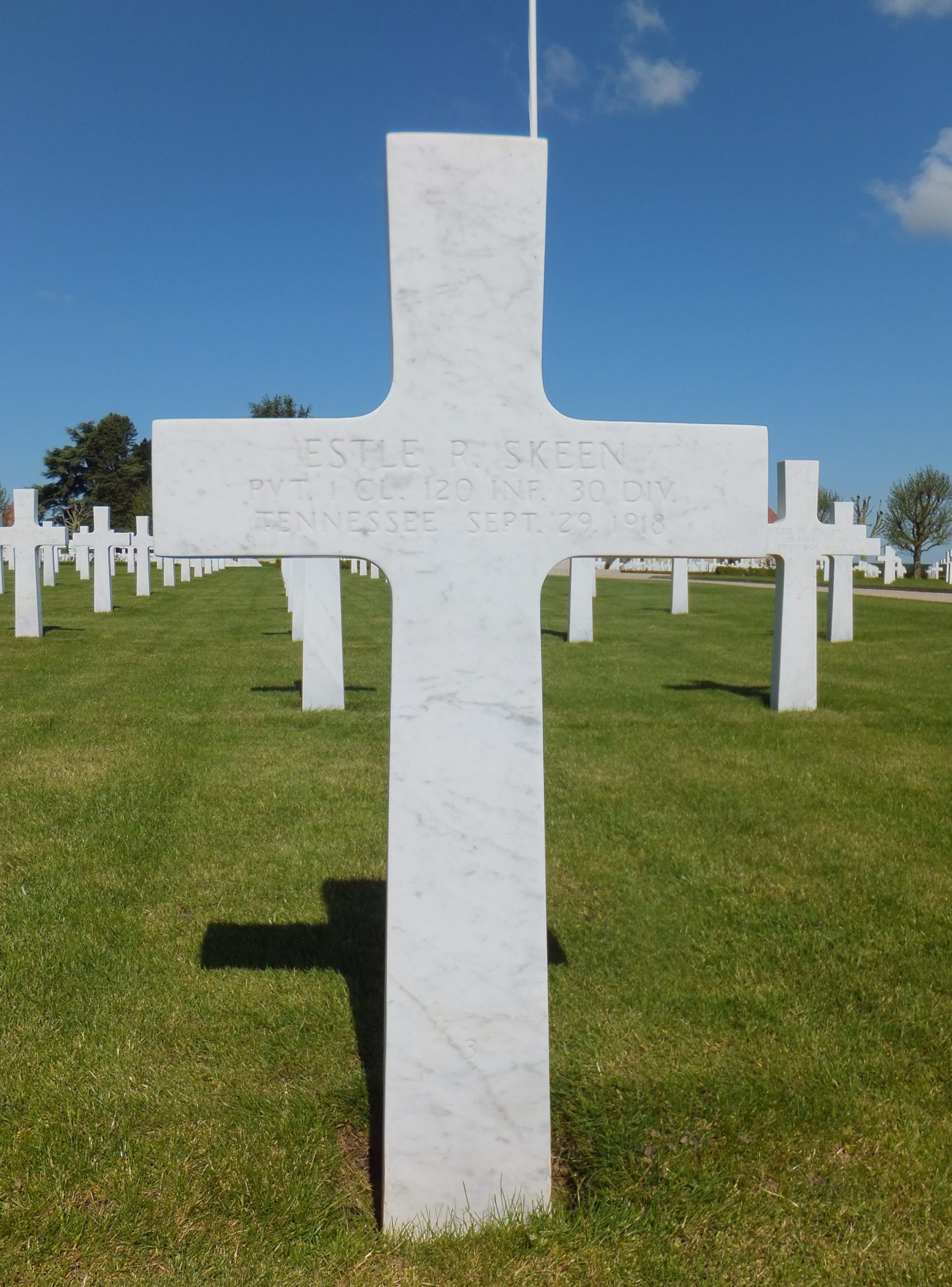 He was killed in action at the age of 21, and is buried plot A, row 24, grave 3, Somme American Cemetery, Bony, France.