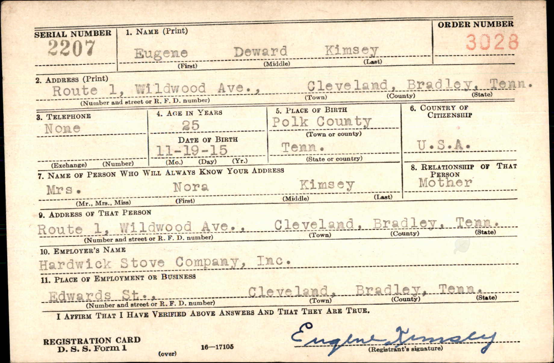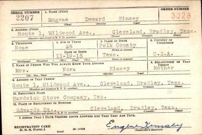 Eugene “Gene” Deward Kimsey was born at Ducktown, Tennessee on 19 November 1915, son of Humphrey Posey Kimsey and Lily Minora Nora Black. Husband of Francis Holloway and father of Gary K. Kimsey.